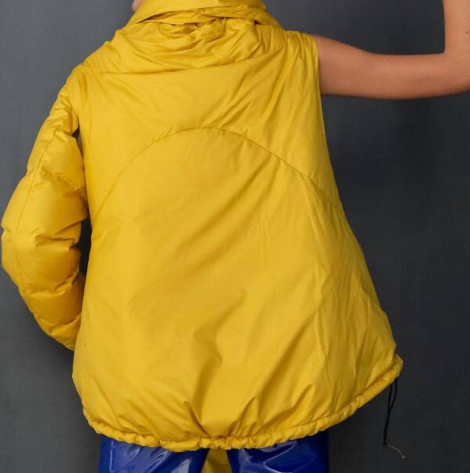 Cooler temps means cute puffer jackets and this one is a fan favorite. Elevate your winter wardrobe with the Psophia Puffer Jacket in striking Marigold, designed for the maximalist trend. Featuring detachable long sleeves and a relaxed asymmetric style, this jacket offers versatile styling options. Crafted from 100% polyester with a 50% feather filling, it provides both warmth and comfort. Made in Spain, it boasts a zip closure and side slit zipped pockets for practical elegance.