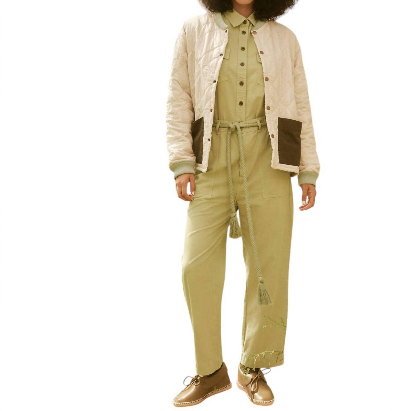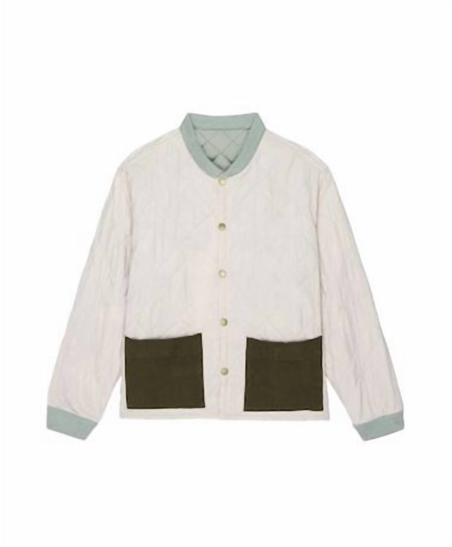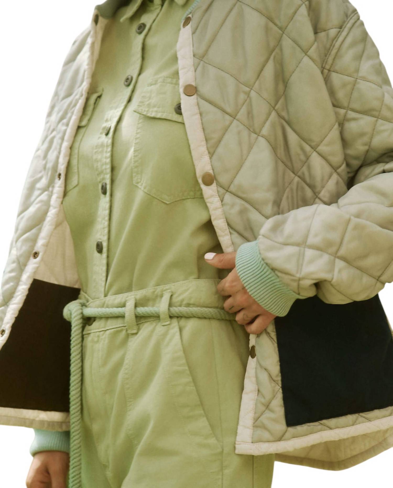 Introducing the Reversible Patch Pocket Puffer Jacket by THE GREAT., a versatile piece with long sleeves and crafted from contrasting 100% Nylon Ripstop and 100% Polyester Taffeta. With its reversible design, this jacket can be worn on either the Pale Army or Cream Blush side, featuring cotton twill patch pockets and soft heathered ribbing for added comfort. Closure: Antique brass metal snap at the front. Ideal for layering over dresses or pairing with jeans for effortlessly chic styling.