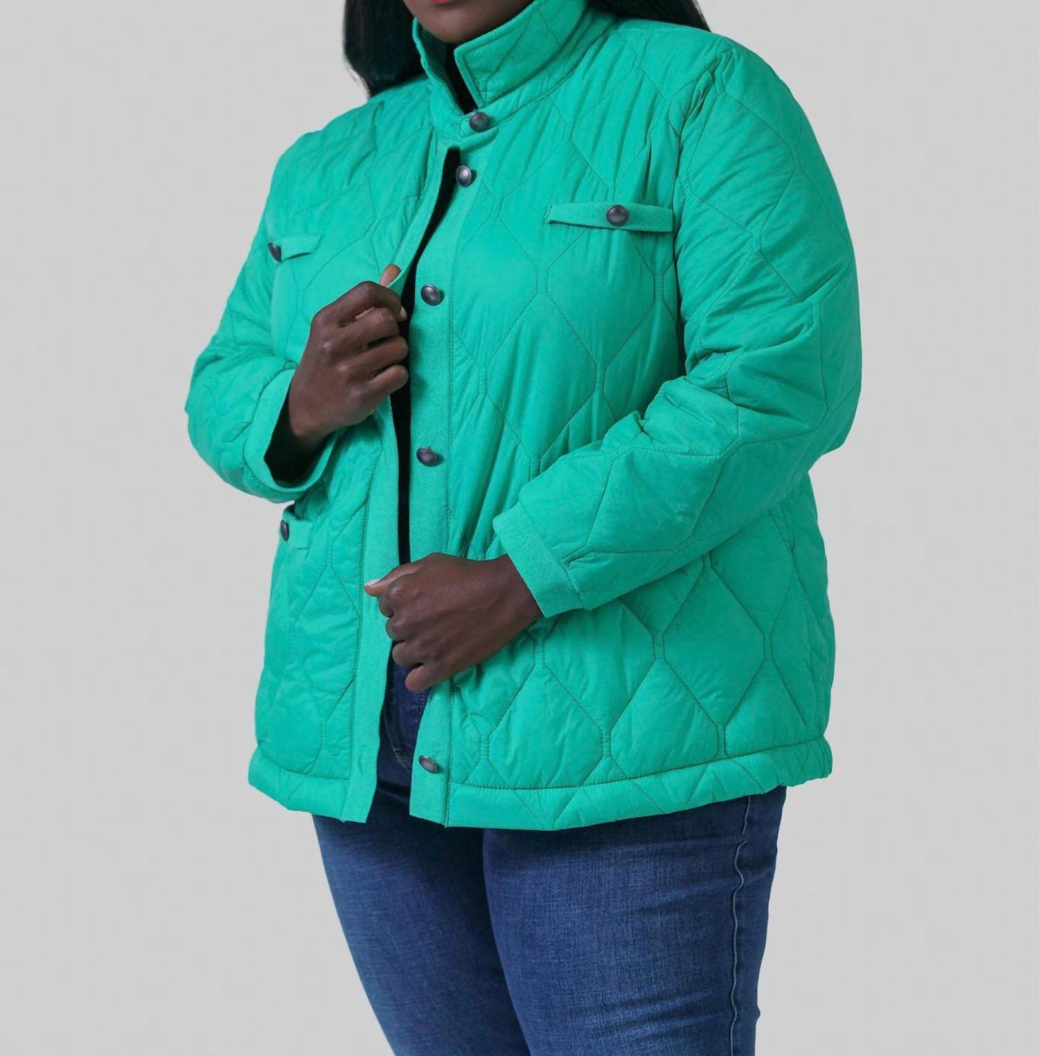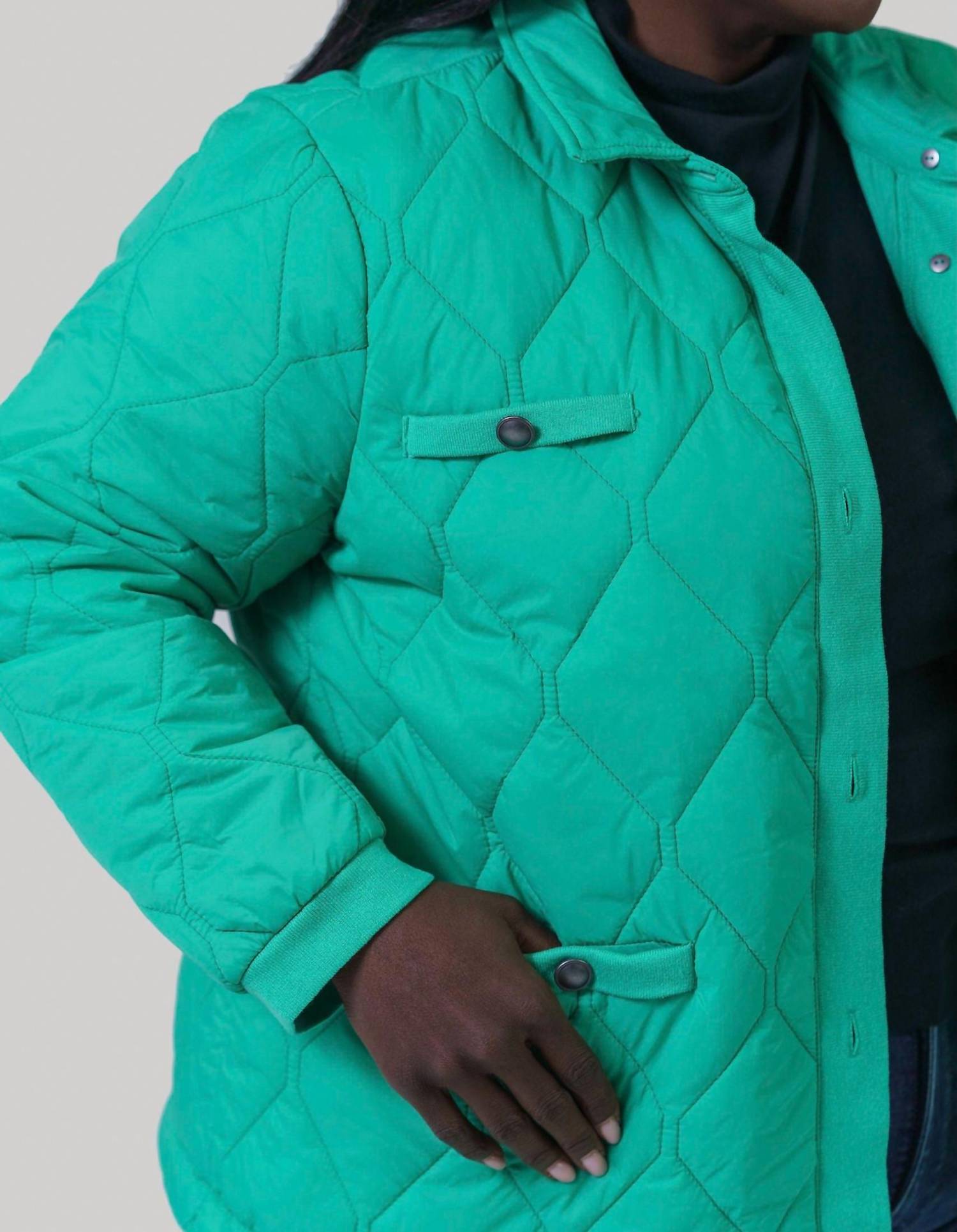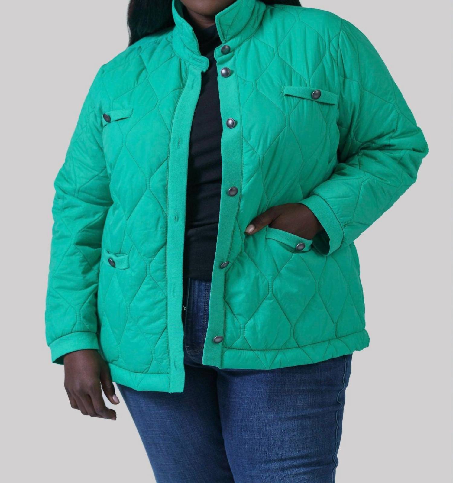 Cooler temps means cute puffer jackets and this one is a fan favorite. Elevate your fall wardrobe with the Knit Trim Puffer Jacket by Nic + Zoe in a stylish fern hue, tailored specifically for plus-size silhouettes. This women's jacket features long sleeves and a quilted textured pattern, combining the elegance of knit details with the functionality of a nylon composition. Designed with convenient welt pockets, it offers a chic button closure with metallic shine for a touch of sophistication. Made with care, this jacket is lined and should be hand washed and laid flat to dry, making it perfect for Thanksgiving travel adventures.