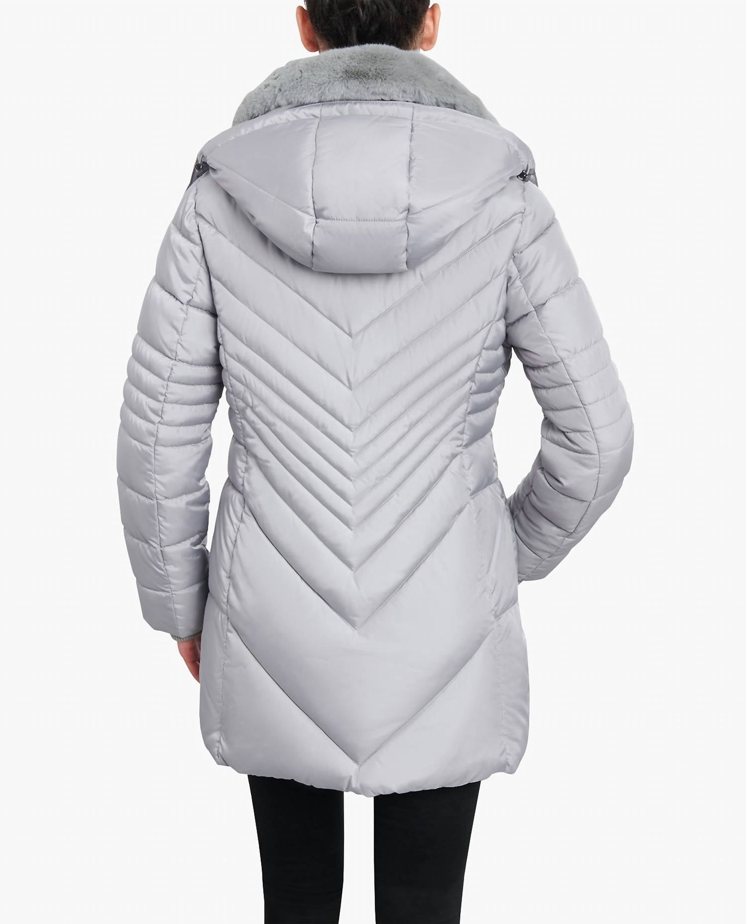 Cozy, cute and timeless. The puffer jacket that will keep you warm all season long. Elevate your winter wardrobe with the London Fog Petite Zip-front Hooded Puffer Jacket in Pearl Grey. Tailored with long sleeves, this piece is comprised of 100% polyester for a water-resistant and stylish wear. The jacket features a quilted-down design with a hidden zip front closure and snap buttons, and practical front slit pockets. Enjoy versatile styling options with its removable hood and button-off faux fur collar, with care instructions that detail a gentle machine wash and low tumble dry.