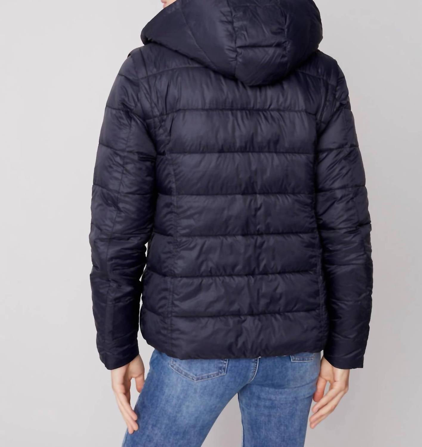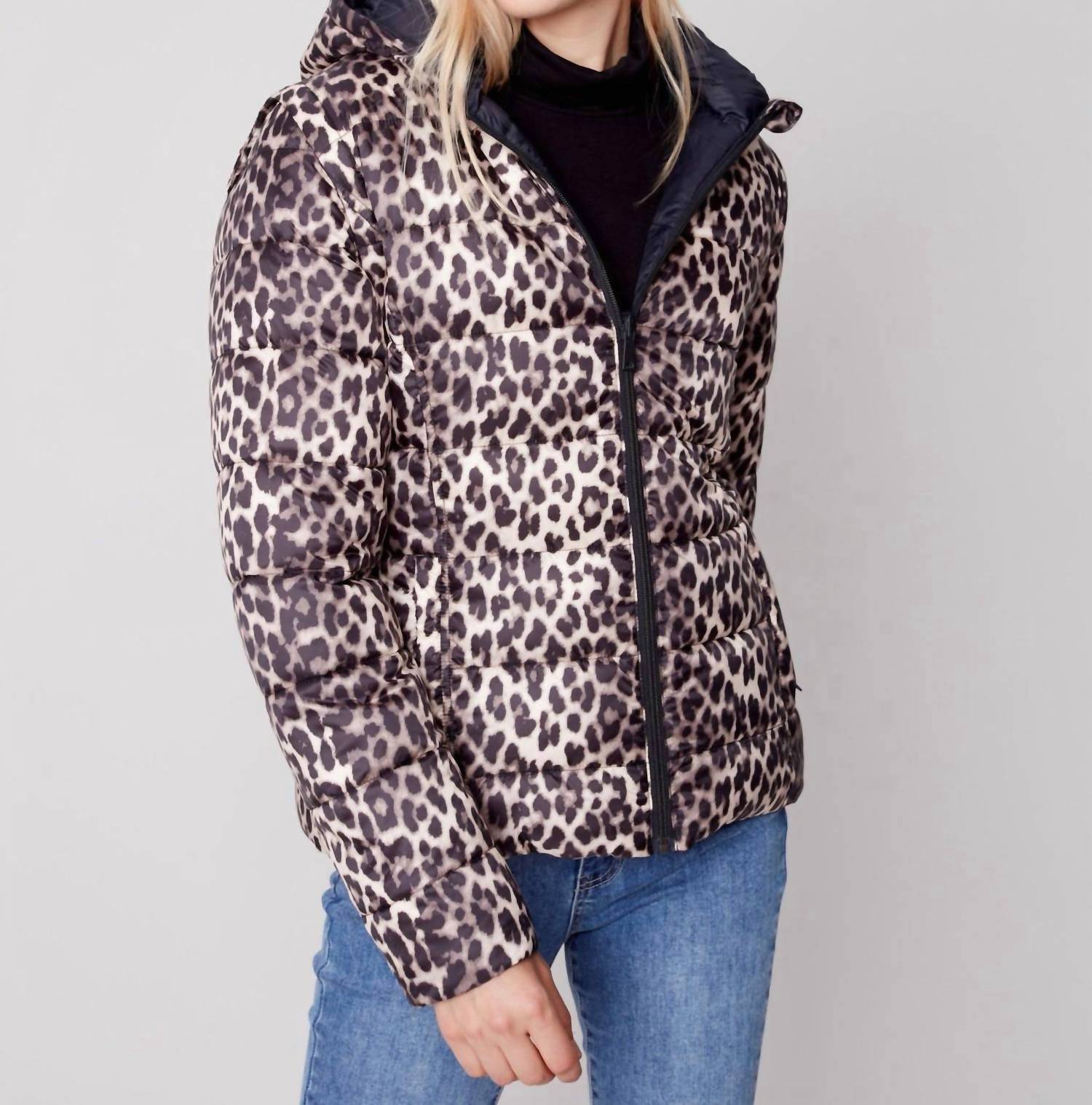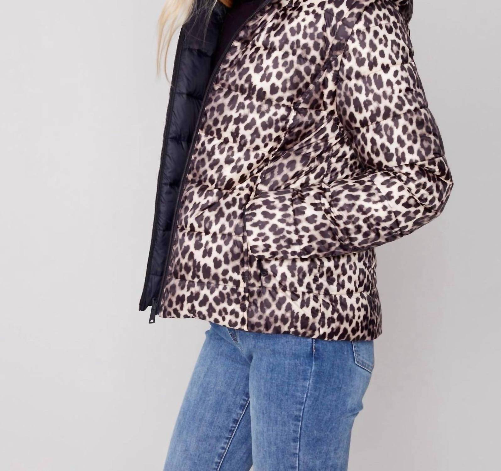 Cozy, cute and timeless. The puffer jacket that will keep you warm all season long. The Four Way Puffer Jacket by CHARLIE B, in a bold animal pattern, makes a stylish statement for your winter travels. This black, long sleeve jacket is crafted from durable polyester and features a convenient zip closure with a hooded neckline. Designed with practicality in mind, it includes pockets and is lined for extra warmth. Easy to care for, simply machine wash it and enjoy the perfect mix of boho chic and comfort this Thanksgiving.