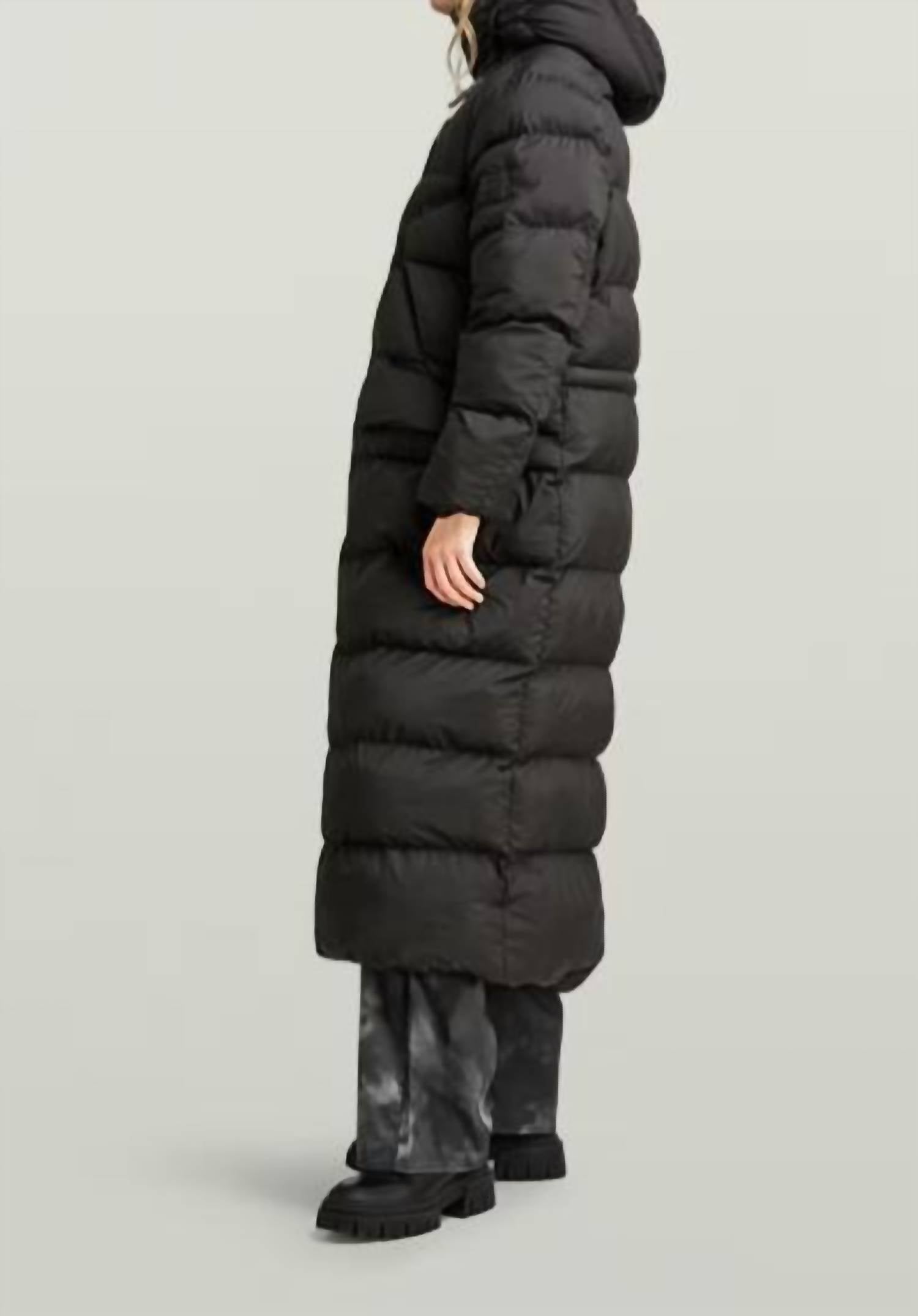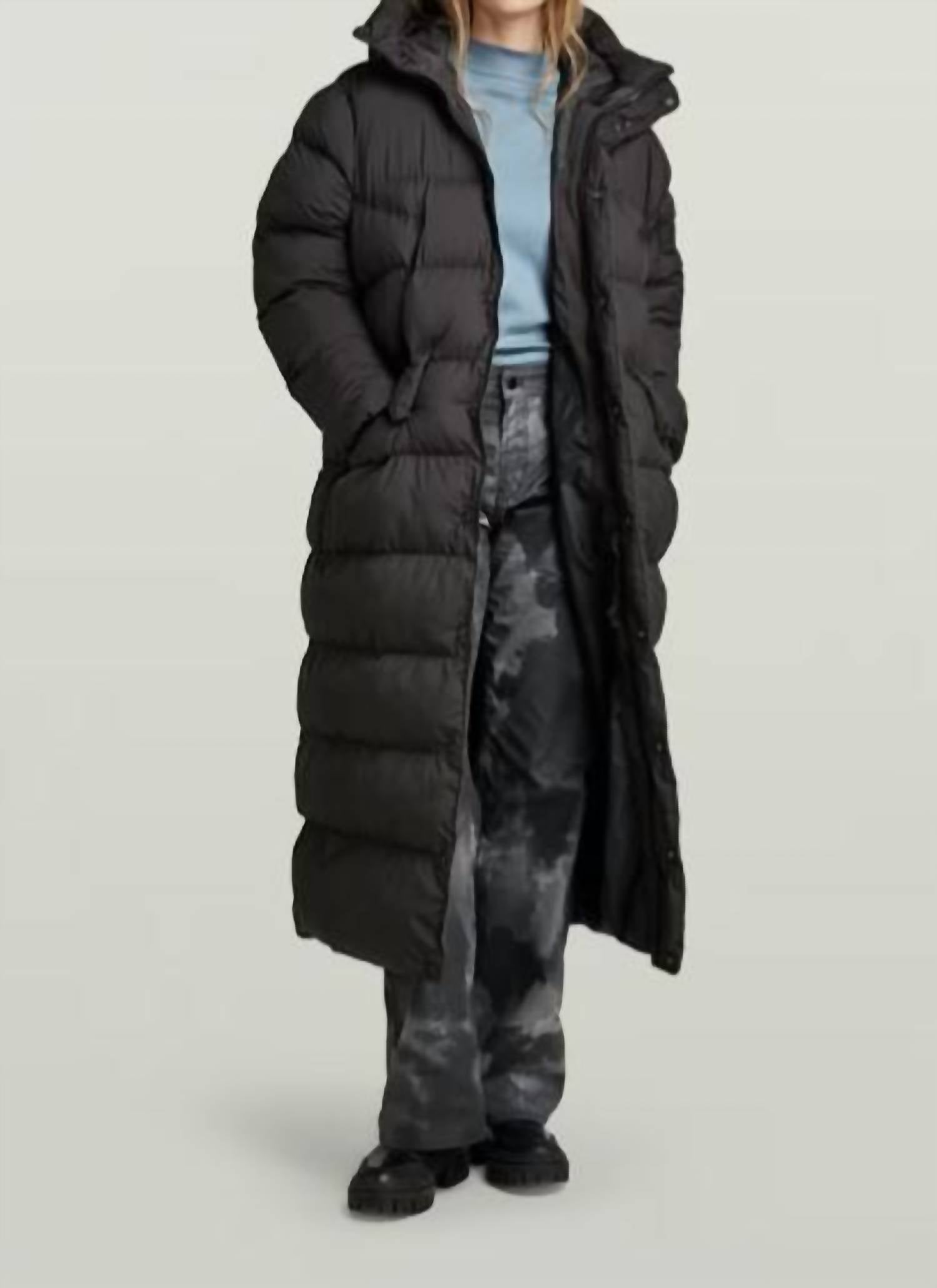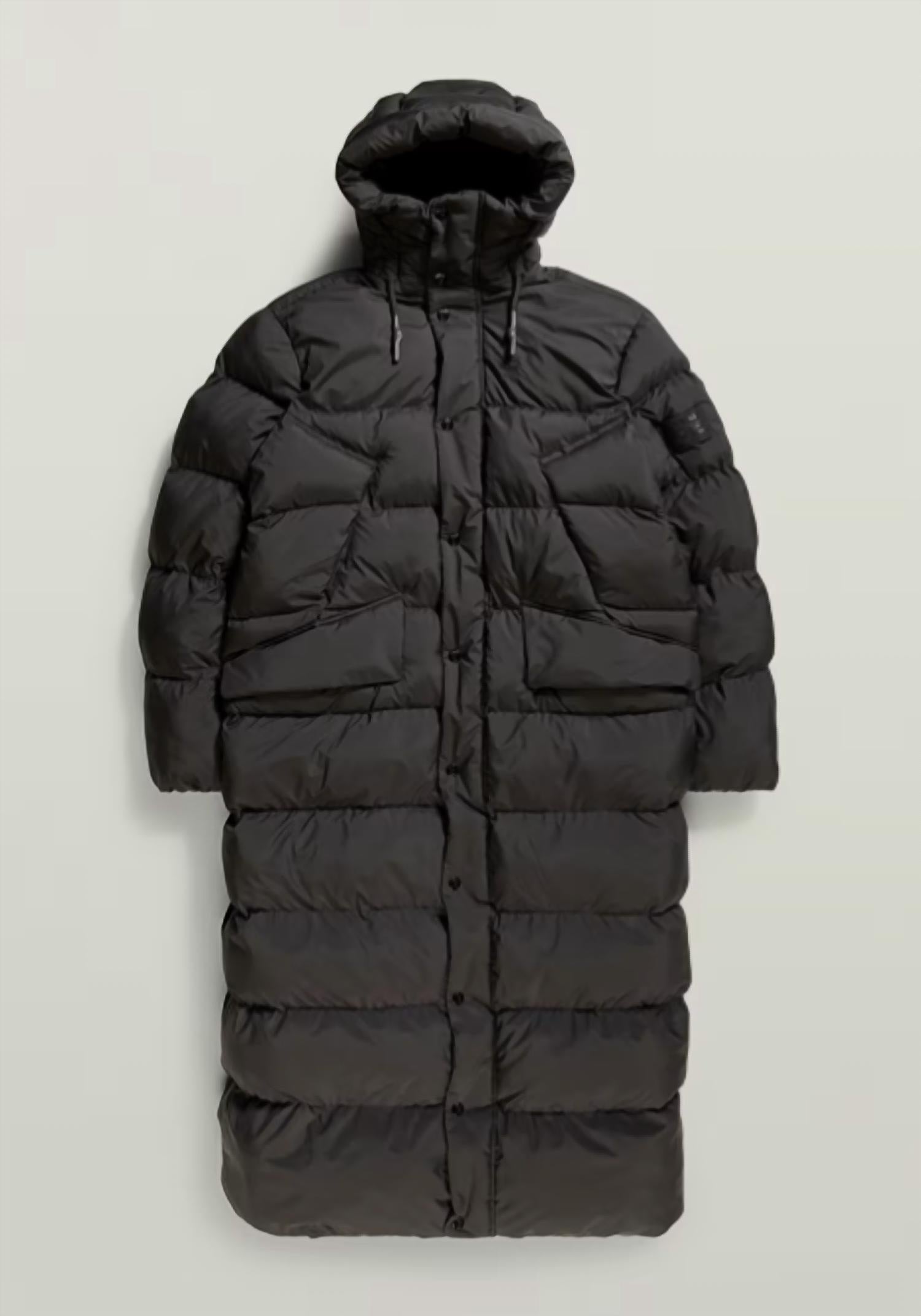 Cozy, cute and timeless. The puffer jacket that will keep you warm all season long. This long puffer jacket features a roomy hood with a foldable peak and raised front for extra protection, and an extended-length cut with adjustable drawcords at the waist. It has a zipper closure with a wind guard and snap buttons, flap waist pockets, concealed chest and interior pockets, and a horizontal back panel for added detail. The water-repellent fabric and padded design ensure warmth and practicality.