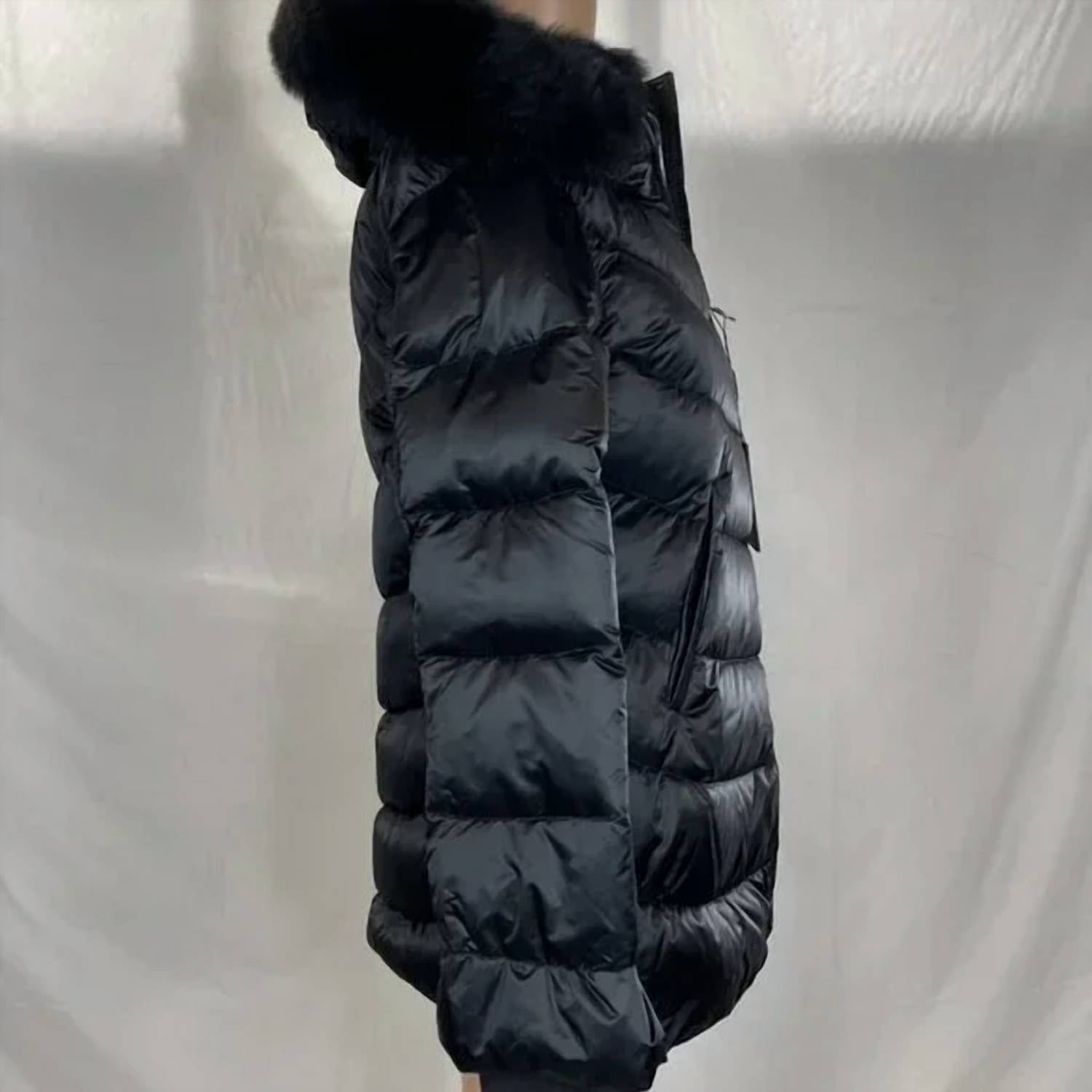 Cooler temps means cute puffer jackets and this one is a fan favorite. Introducing the Women’s Après-Ski Jacket by Gorski, a luxurious blend of fashion and function perfect for winter escapades. Featuring long sleeves and crafted from a nylon blend with a genuine shearling trim, this jacket offers a sophisticated look with its detachable shearling-trimmed hood. Closure: Zip-front with a snap placket for a secure fit. Material Composition: 97% Nylon/Polyamide, 3% Polyurethane.