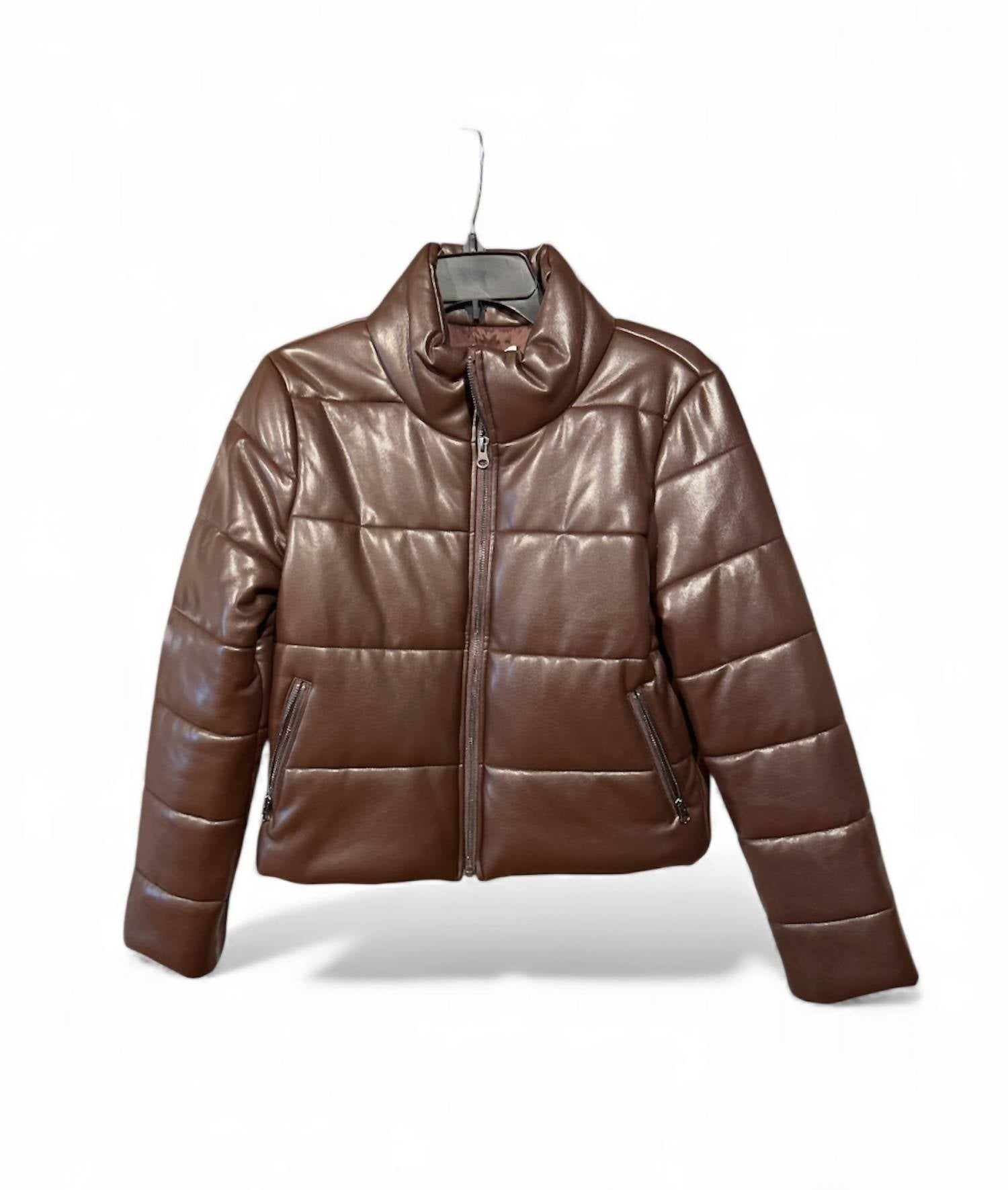 Cozy, cute and timeless. The puffer jacket that will keep you warm all season long. Discover J. Society's Women's Puff Bomber Jacket in a sumptuous chocolate hue, perfect for minimalist winter style. This faux leather bomber features luxurious puff detailing and a modern length that hits right at the hip. Designed with a turtleneck and equipped with convenient pockets, it's both stylish and practical. Closure: Zip closure.