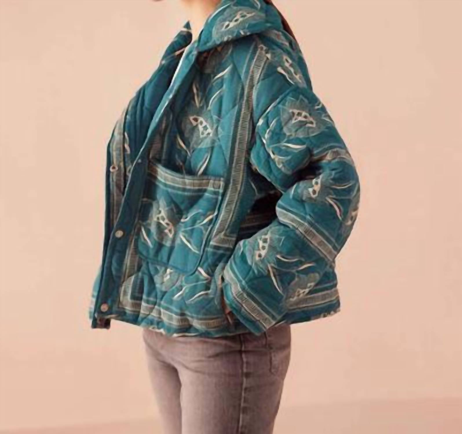 Cooler temps means cute puffer jackets and this one is a fan favorite. Introducing the Karima Jacket by OMIKA, a versatile piece in an Aara Espresso hue that elevates everyday style with its unique design. This long sleeve, fully lined quilted jacket is made from 100% Cotton and features a collar that adapts for varying moods. With beautifully placed pockets at the chest and side seams, and a hidden snap closure under the front placket, this piece offers both practicality and flair. Length is 23.5" from size S. For care, machine wash and line dry. Model is 5'8", size 2, wearing size S.