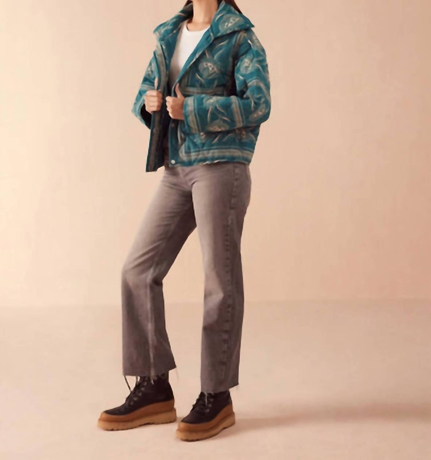 Cozy, cute and timeless. The puffer jacket that will keep you warm all season long. Introducing the Karima Jacket by OMIKA, a versatile piece in an Aara Espresso hue that elevates everyday style with its unique design. This long sleeve, fully lined quilted jacket is made from 100% Cotton and features a collar that adapts for varying moods. With beautifully placed pockets at the chest and side seams, and a hidden snap closure under the front placket, this piece offers both practicality and flair. Length is 23.5" from size S. For care, machine wash and line dry. Model is 5'8", size 2, wearing size S.