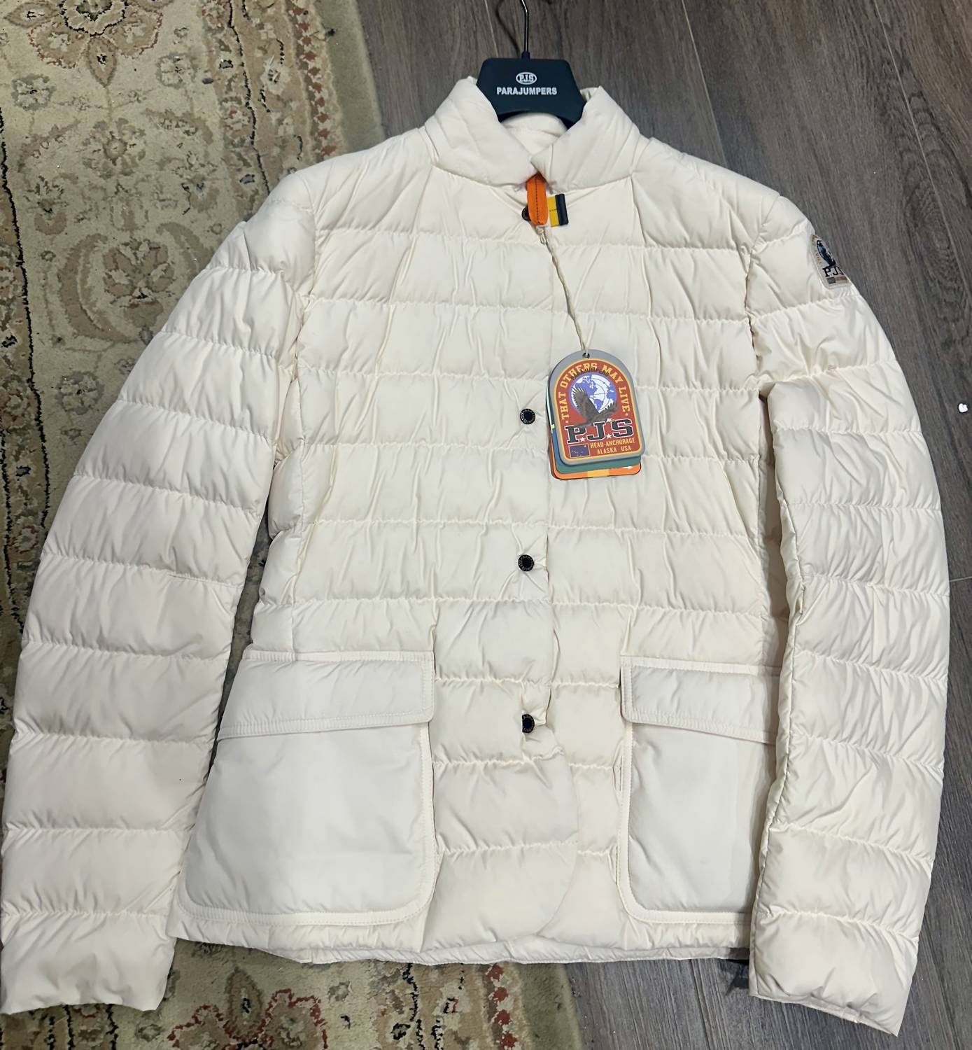 Cooler temps means cute puffer jackets and this one is a fan favorite. Elevate your winter wardrobe with the Women's Alise Jacket With Pockets by Parajumpers, a minimalist yet chic piece in an eye-catching Moonbeam hue. Designed with long sleeves and a textured pattern, this puffer jacket is perfect for travel and Thanksgiving gatherings. The mockneck enhances its stylish design, while the practical pockets offer convenience for your essentials. Ideal for keeping you cozy during the colder months, it's a statement piece for any winter outing.