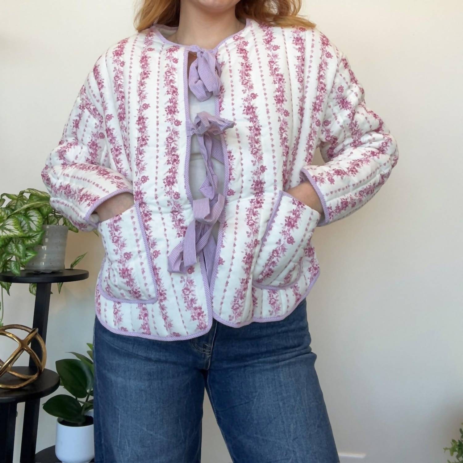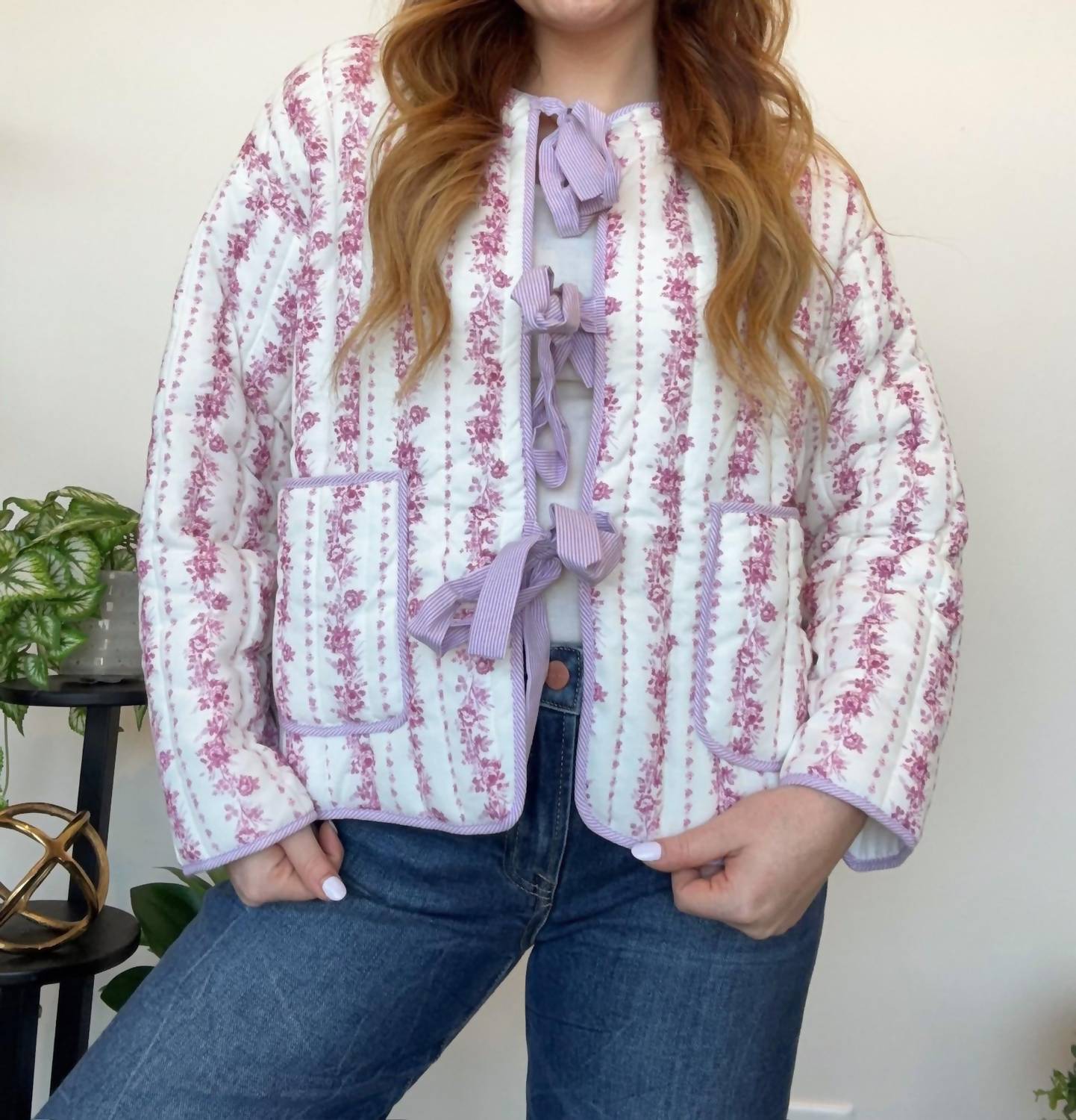 Cooler temps means cute puffer jackets and this one is a fan favorite. Elevate your autumn travel ensemble with the Peach Love Floral Quilted Bow Jacket, a delightful blend of style and warmth. Designed for women with a penchant for minimalist trends, this pink floral piece features long sleeves, composed of 85% Polyester and 15% Cotton. Its crewneck design, complete with tie closure, and quilted texture offer both comfort and flair. Conveniently wash it in the machine and tumble dry for easy care.