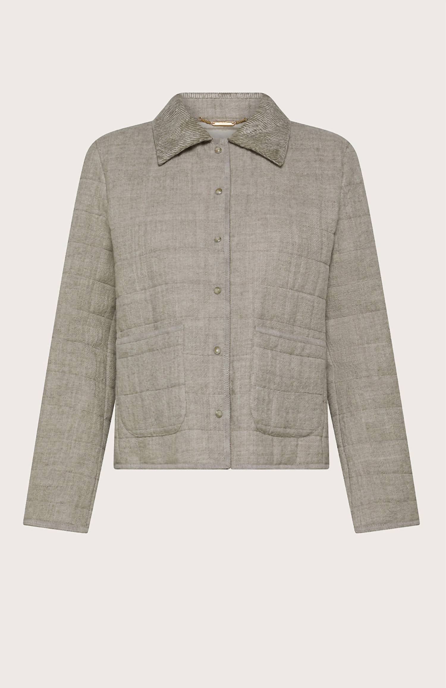 You'll be reaching for this puffer jacket all season long. The Women's Linen Wool Blend Puffer Jacket by SEVENTY is a chic and versatile outerwear piece crafted in Italy. It boasts long sleeves and is made from a refined blend of 63% virgin wool and 37% linen, offering a lightweight yet structured design in a stylish beige hue. This jacket features a boxy, cropped silhouette with a quilted texture and a soft corduroy collar, complemented by a practical snap closure for ease and versatility. Ideal for travel and minimalist styling, this quilted puffer seamlessly transitions from casual to polished looks.