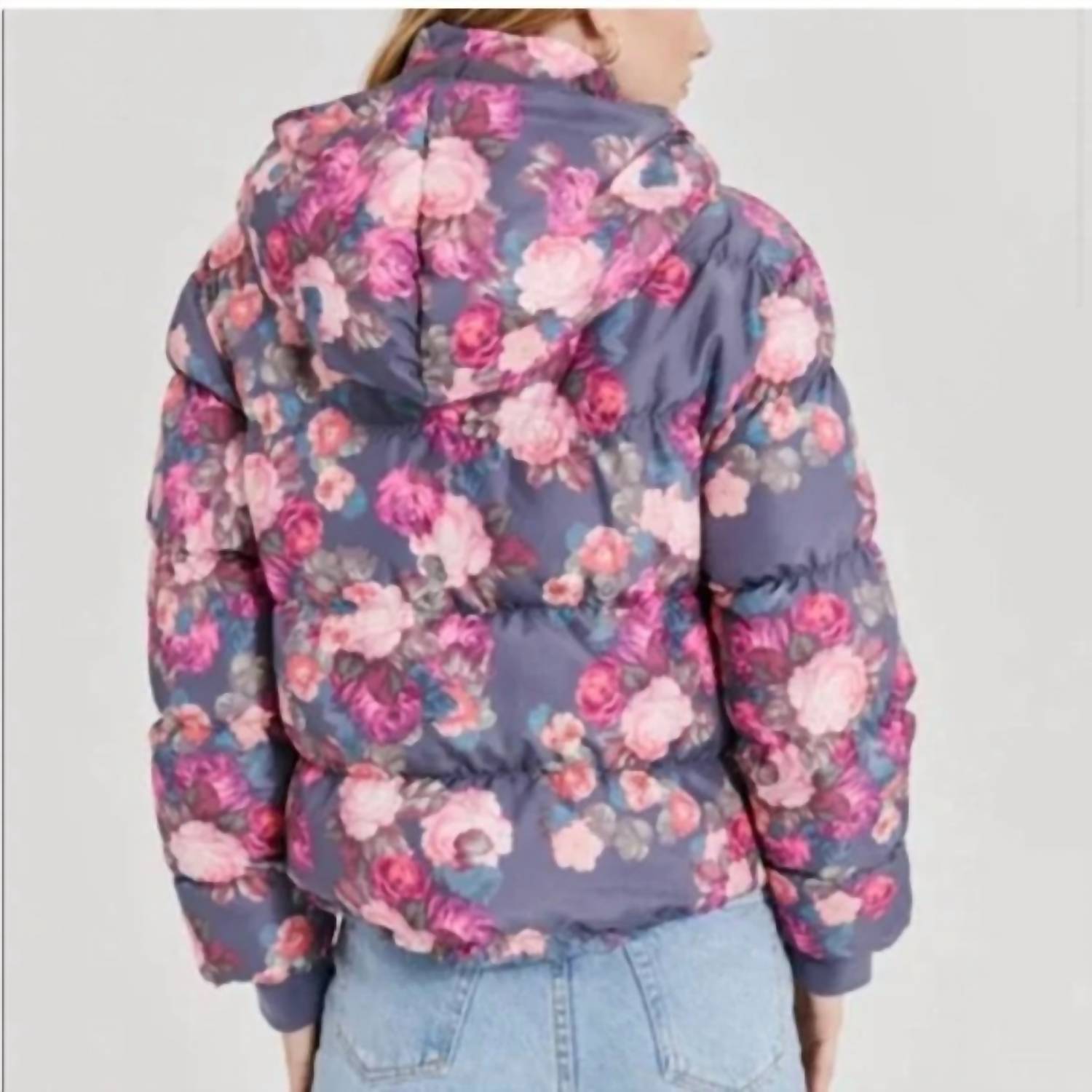 Something Navy - Floral Hooded Puffer Jacket