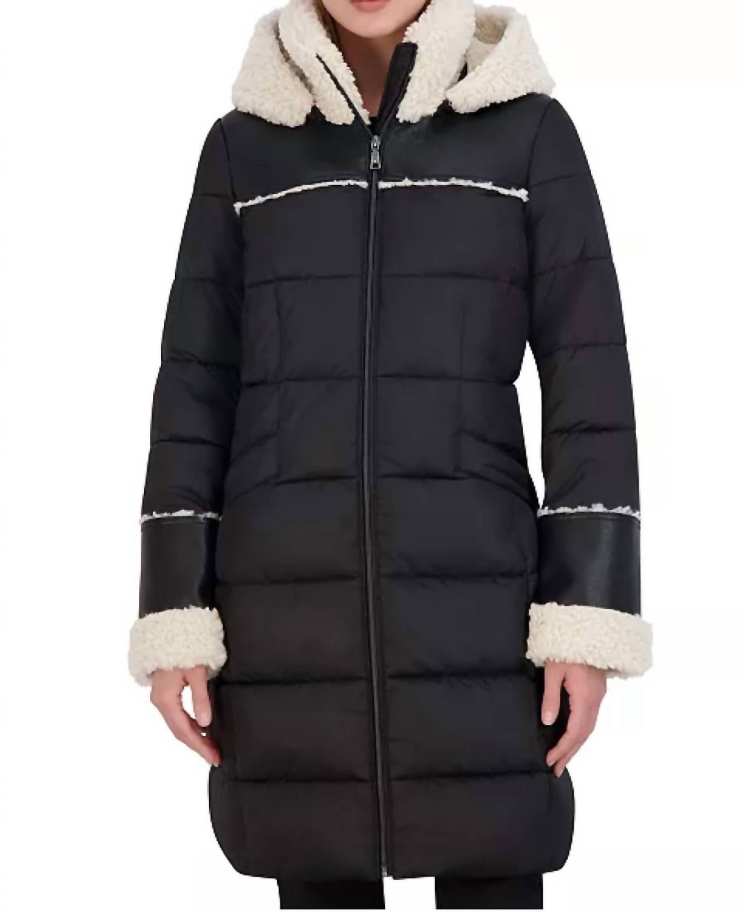 Tahari - Faux-shearling-trim Hooded Puffer Coat
