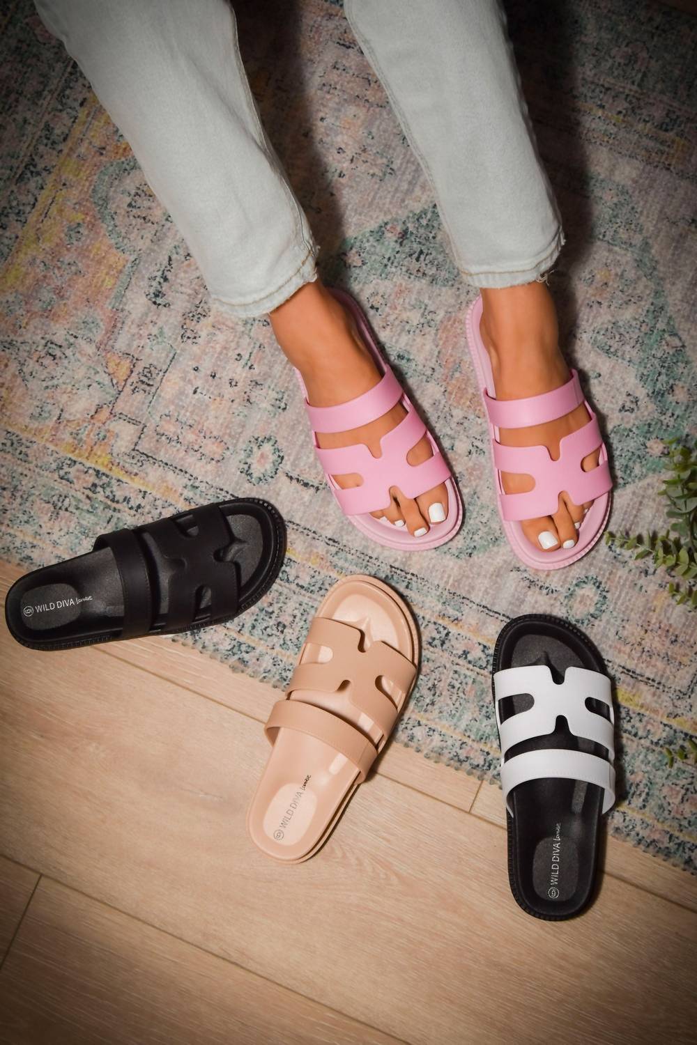 Classicly cute and all-day-wearable. We love this sandal. Embrace summer style with the Women's Jenny Sandals by WILD DIVA, perfectly crafted for comfort and fashion-forward flair. These sandals feature an open toe and flat heel design, ideal for vacation strolls or streetwear looks. Made from quality PVC, they offer both durability and a modern aesthetic. Perfect for your Thanksgiving travels, these sandals are an essential addition to your summer wardrobe.