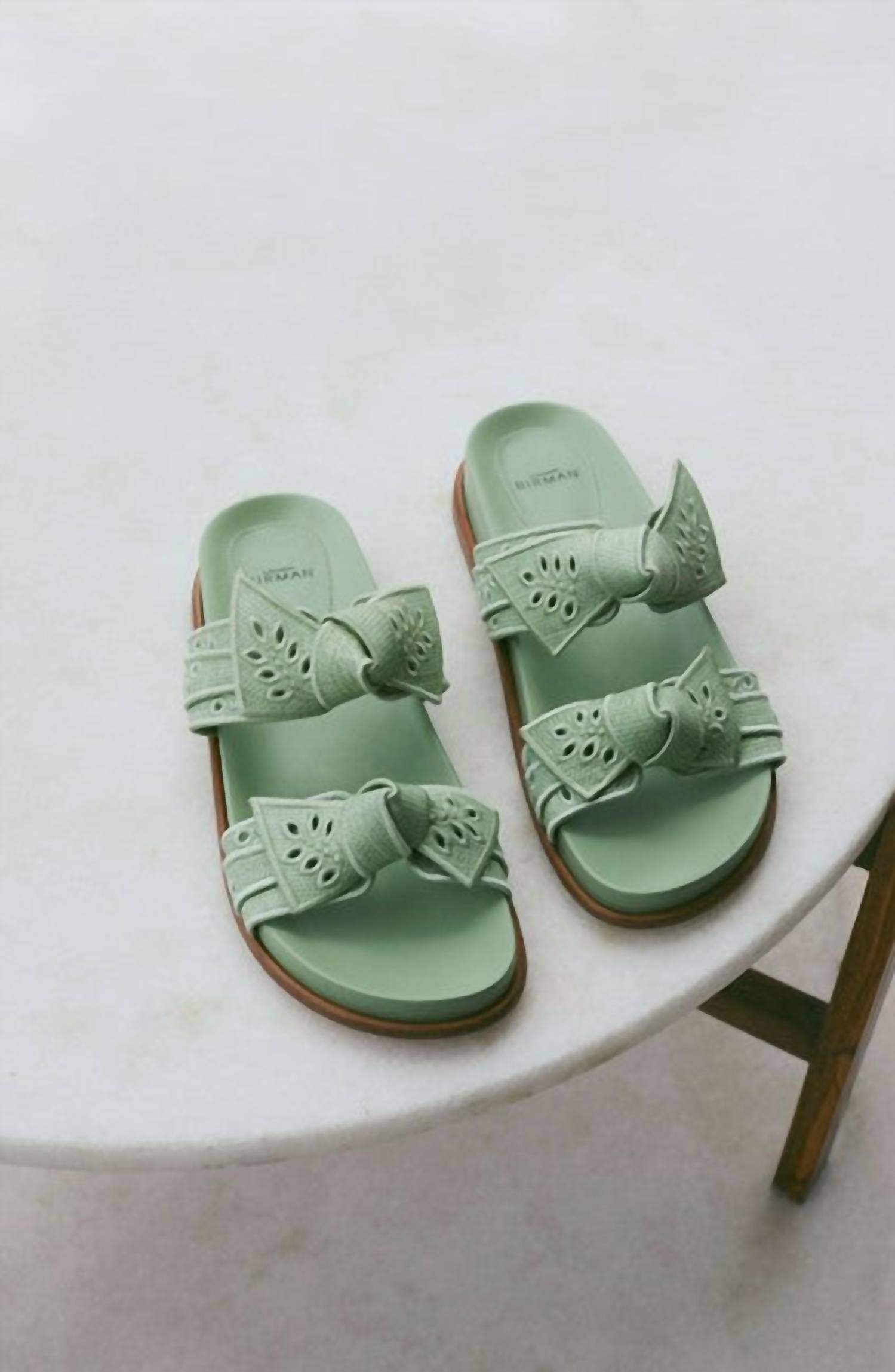Flowy dresses, cropped pants, and even jumpsuits... this sandal works with them all! Introducing the Women's Maxi Clarita Embroidery Sandal by Alexandre Birman, the perfect pop of color for your spring and summer wardrobe. These retro green flat slides feature embroidered knot details, characteristic of the brand's signature style. With a squared toe and flat heel under 1 inch, they blend streetwear trends with vacation-ready comfort. Style them effortlessly with a dress or a casual jeans-and-blouse combo for a chic look all season.