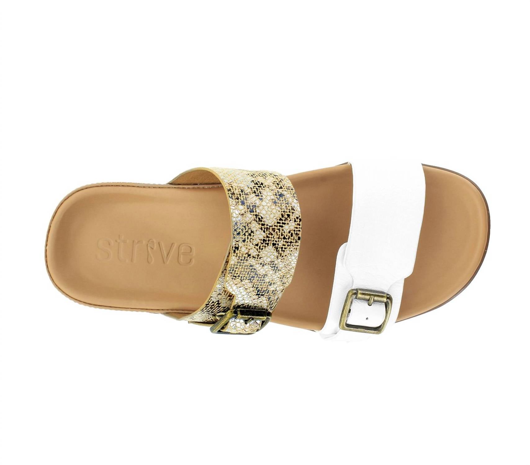 A classic two strap slide with bold buckles. Effortless to style and fully adjustable. Incorporates Biomechanical Footbed Technology. Built-in arch support. Two fully adjustable buckle straps. Memory foam footbed cushioning. Soft, breathable, natural leather footbed cover. Cushioned micro-fibre lining.