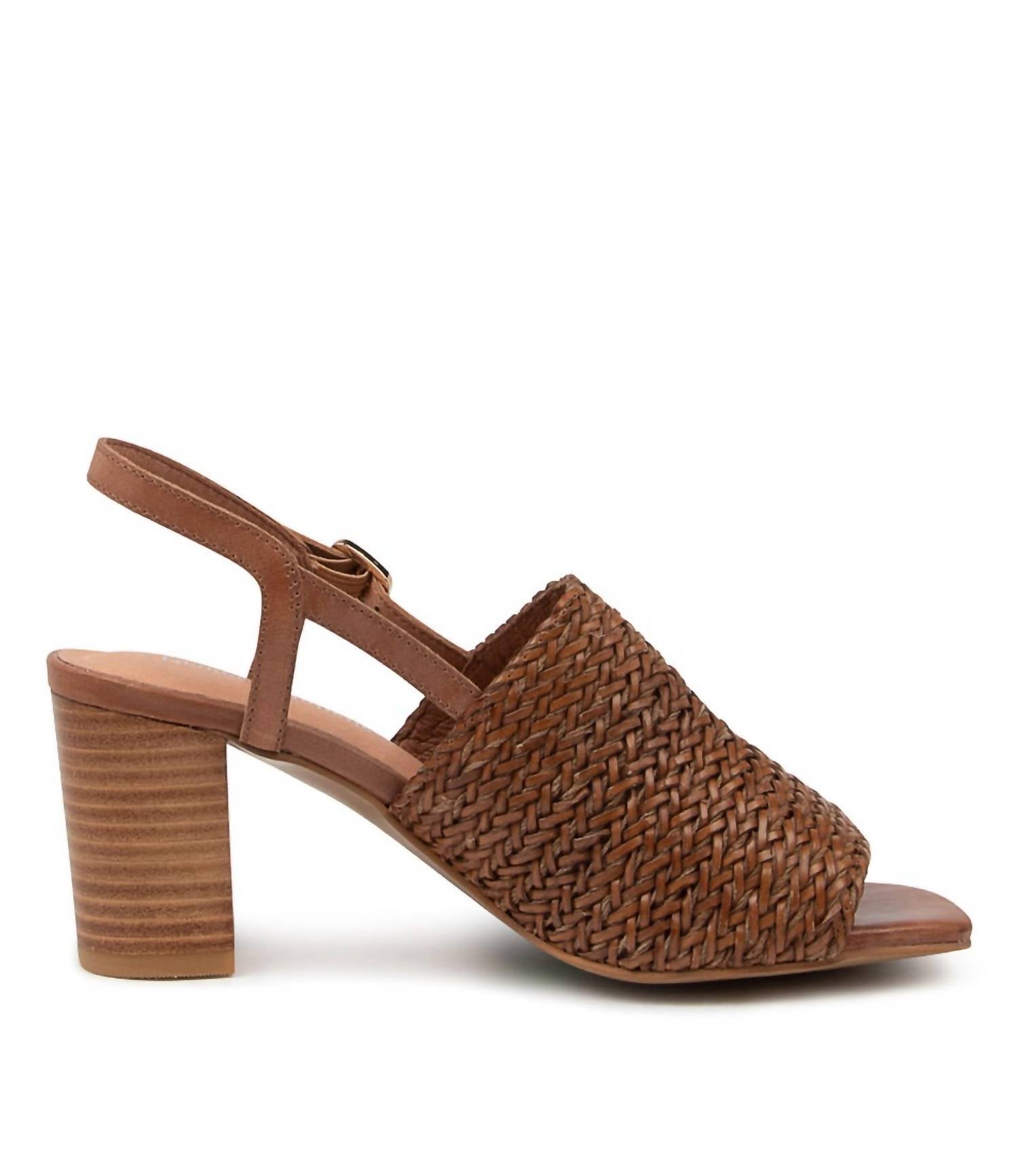 Flowy dresses, cropped pants, and even jumpsuits... this sandal works with them all! Experience style and comfort with the Pickle Weave Leather Sandals by Django and Juliette, designed for the modern woman. Featuring a trendy square toe and woven upper, these tan sandals include a buckled leather ankle strap for a secure, adjustable fit. The 2.56-inch stacked block heel offers mid-height stability, perfect for casual outings or weekend adventures. Crafted from premium leather in Australia, these sandals deliver durability and a sleek look.