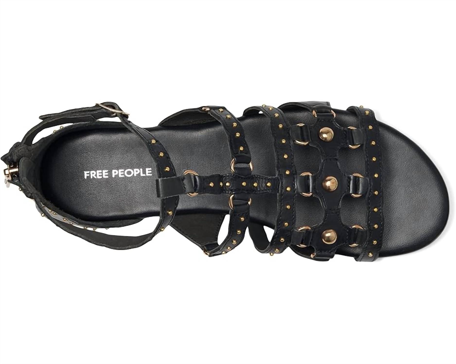 Classicly cute and all-day-wearable. We love this sandal. Step into summer with the Women's Jade Gladiator Sandal by Free People, a chic black leather piece perfect for any streetwear enthusiast. Crafted with an open toe design and flat heel, these sandals offer comfort and style for both everyday outings and special occasions like Easter and engagement parties. The minimalist .5" heel height accentuates their sleek silhouette, making them an ideal choice for your warm-weather wardrobe.