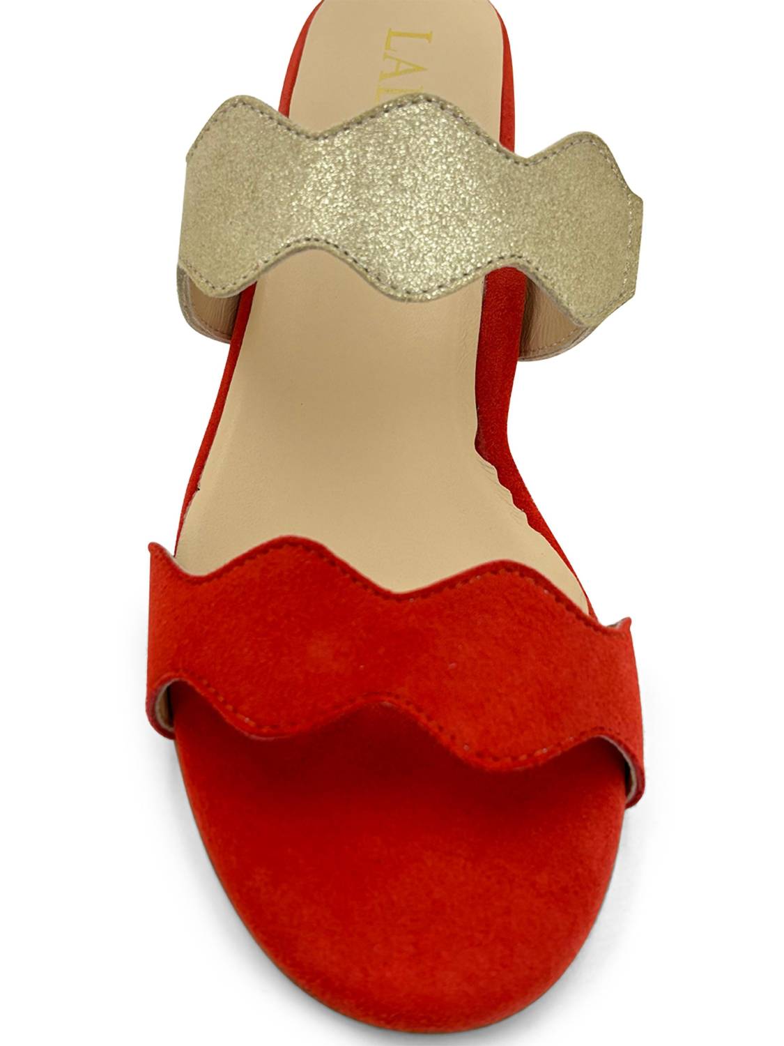Flowy dresses, cropped pants, and even jumpsuits... this sandal works with them all! Step into sophistication with the Bella Women's Slides by Lalisa, meticulously crafted from luxuriously soft suede in a vibrant red hue. These chic sandals feature an open toe design and a block heel of approximately 2 inches, offering both style and a subtle lift. The interior boasts a smooth leather lining and a cushioned support footbed, ensuring comfort throughout the day. Designed with a durable leather outsole enhanced with rubber inserts, these slides provide reliable grip on various surfaces, reflecting exemplary Spanish craftsmanship.