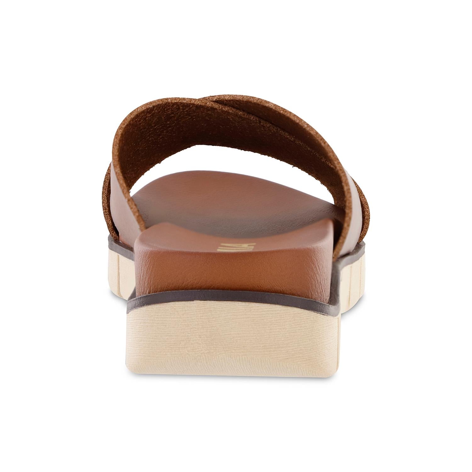 This sandal will take you from brunch to dinner and everything in between. Step into the season with the Women's Elissa Slide Sandal by MIA, featuring an open toe design perfect for holiday parties. This chic, minimalist sandal in cognac showcases two wide cross-straps for a secure fit. Made from soft, vegan leather with the MIA Signature Footbed for all-day comfort. Ideal for the woman on the go, this slide effortlessly combines style and practicality.
