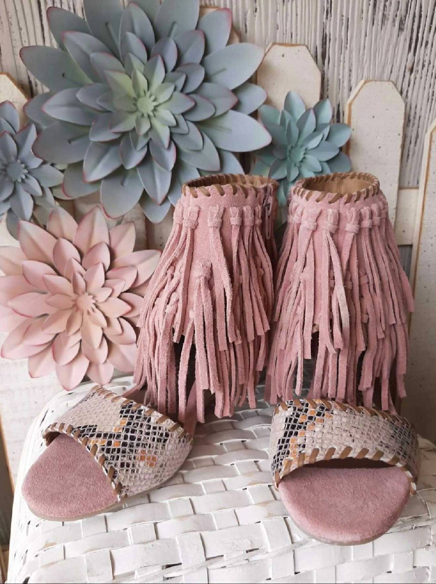 Flowy dresses, cropped pants, and even jumpsuits... this sandal works with them all! This Naughty Monkey feisty wedge has a leather upper with a tooled snake skin toe strap and a fringed ankle.  How much fun would these wedges be??? Inside zipper for easy on and off 3.5 inch wedge heel Cushioned footbed Fits true to size, if between sizes, size up