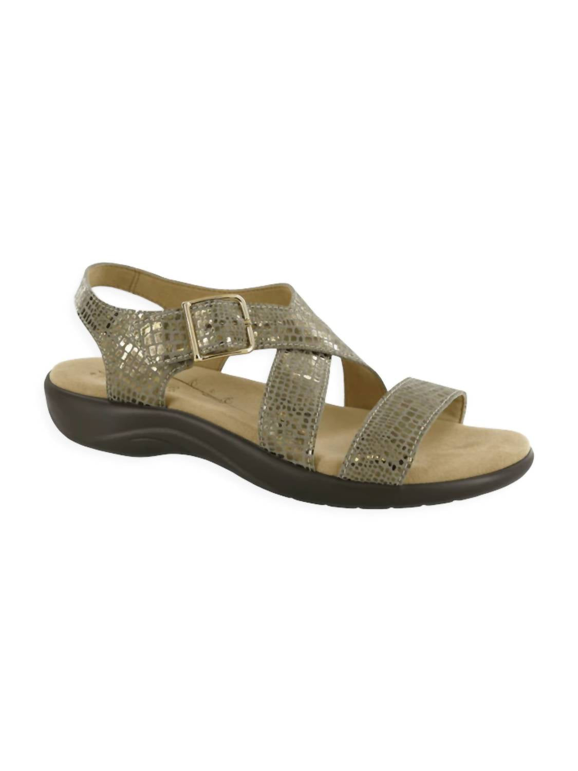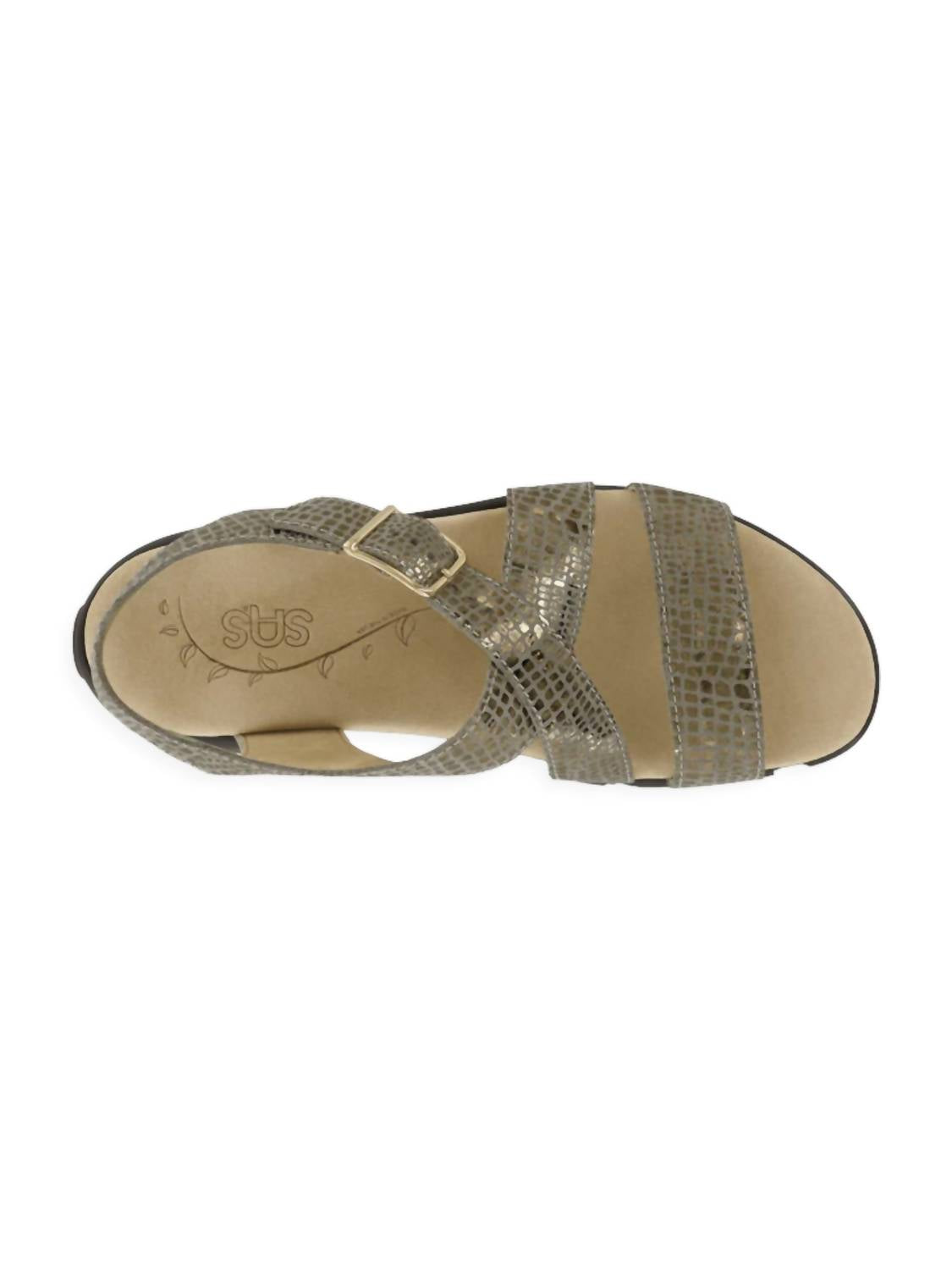 Flowy dresses, cropped pants, and even jumpsuits... this sandal works with them all! Step into elegance with the Women's Laguna Strap Sandals by SAS, expertly crafted for those who value both style and comfort. These sandals feature beautiful genuine leather straps, complemented by a contoured, padded insole and cushion outsole for ultimate comfort. The open toe design and metallic buckle across the instep ensure a perfect fit, with a low heel height of 1.375 inches providing just the right amount of lift.