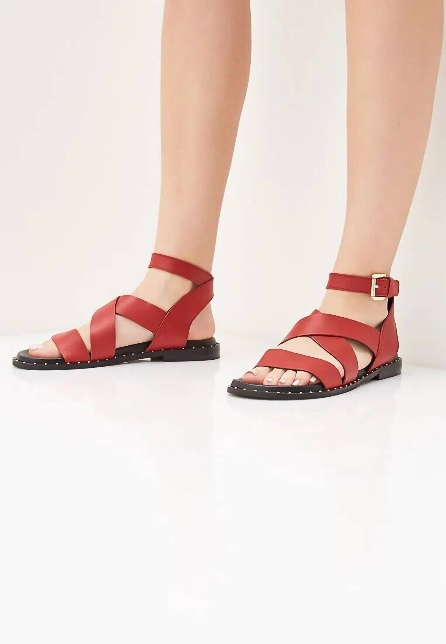 Flowy dresses, cropped pants, and even jumpsuits... this sandal works with them all! Tiny studs trace a comfy contoured footbed for a touch of modern edge on this versatile strappy sandal. Adjustable ankle strap with buckle closure Contoured padded footbed Leather upper/synthetic lining and sole