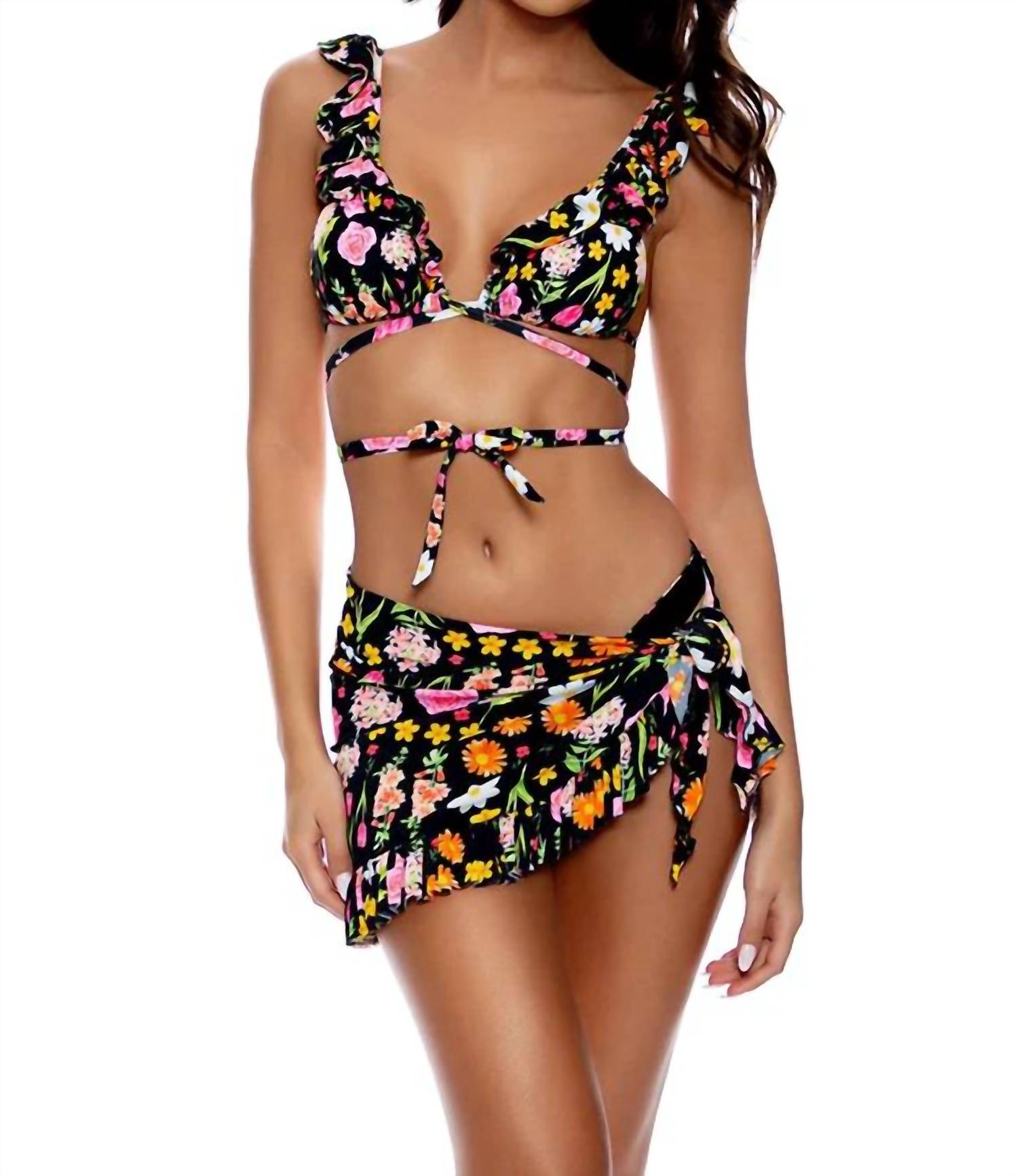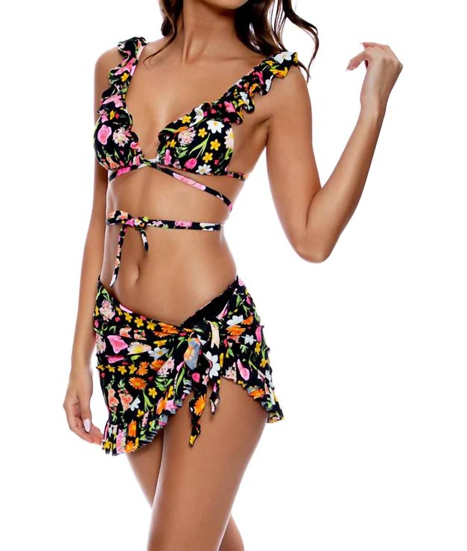 Throw this over any bathingsuit for an effortlessly chic look. Meet the Luli's Secret Garden Sarong by Luli Fama, your new summer essential for a flawless beach day. This flirty mini skirt features a sarong style with a playful ruffle hem, creating a delightfully flowy silhouette. Crafted from 100% Nylon in a vibrant multi color floral print that may vary slightly, each piece is unique. For care, hand wash and line dry to maintain its charming style.