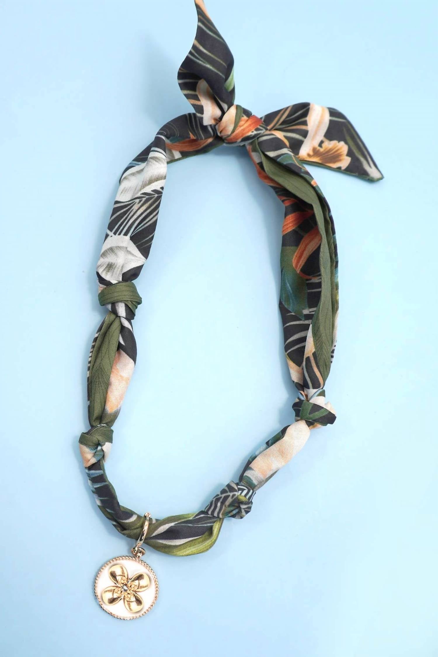 The perfect accessory to complete any look. Discover the Women's Handcrafted Scarf Necklace by Josslyn by Wall to Wall, a unique piece in a captivating green that seamlessly combines fashion and functionality. Crafted from a soft fabric scarf adorned with alloy metal accents and charms, this versatile accessory can be styled as both a scarf and necklace. With an adjustable tie closure, each handmade piece measures approximately 35-40 inches in length, providing a truly customizable fit. Designed for easy care, this necklace is spot clean only, with slight variations that add to its individual charm.