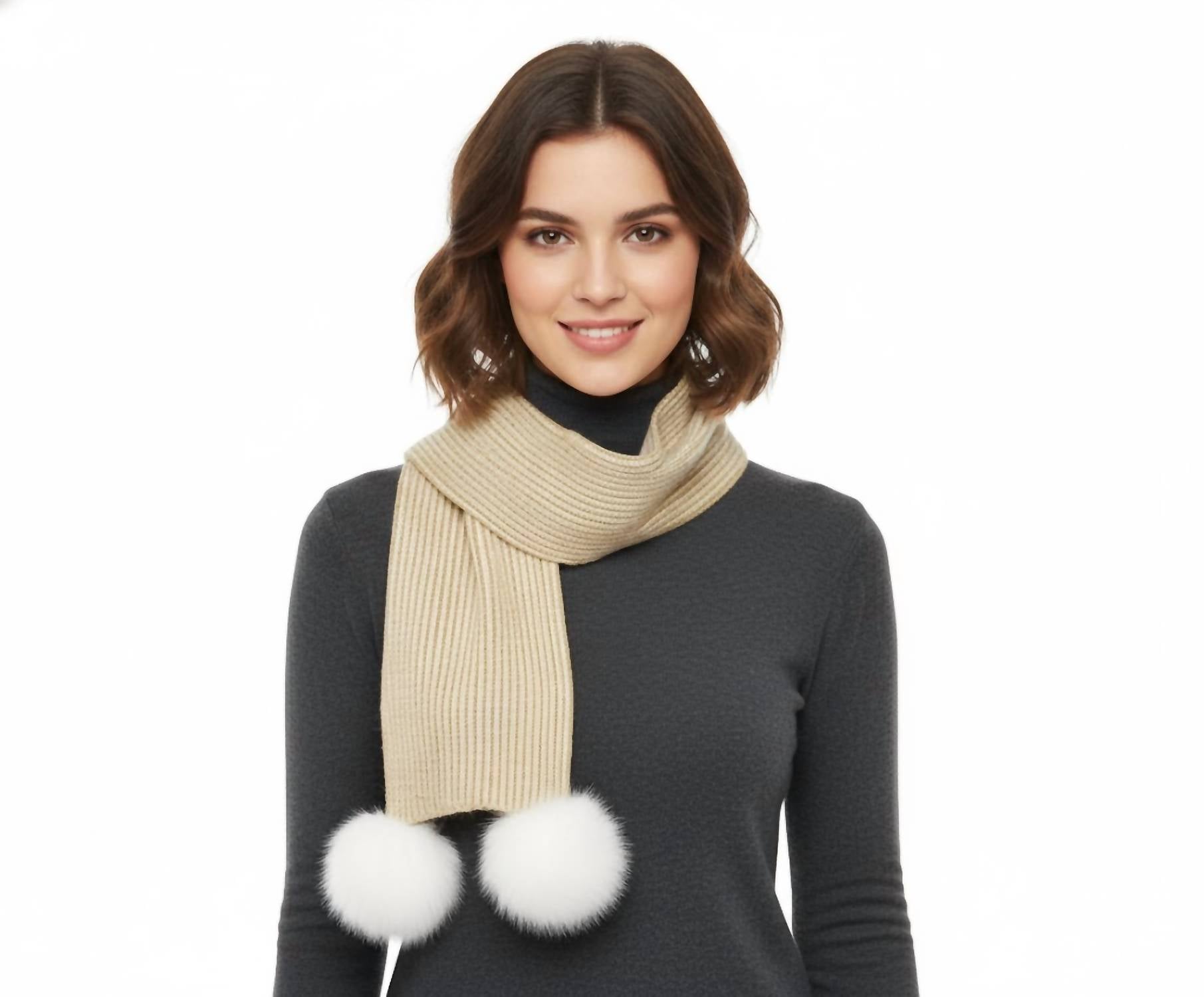Mitchie'S Matchings - Women's Ribbed Fox Pom Scarf