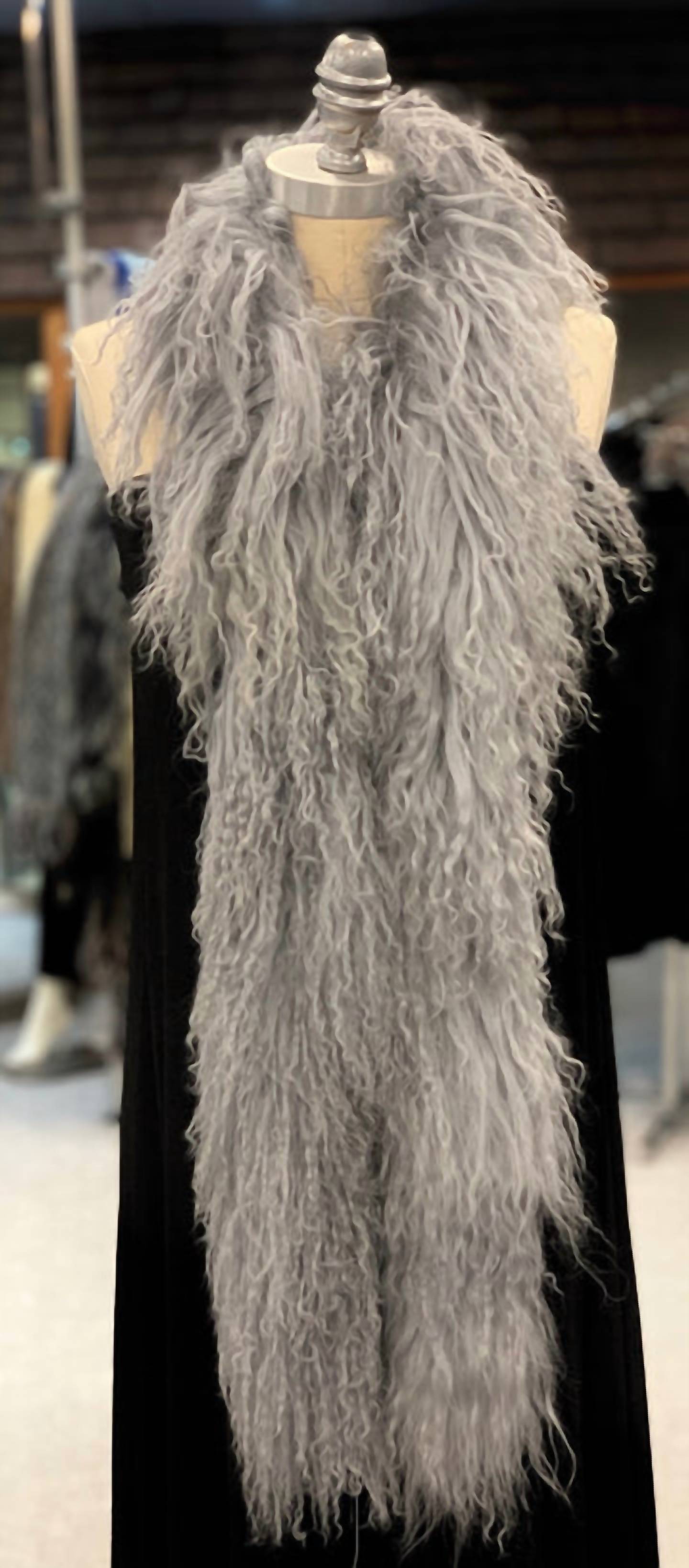 Add this to any outfit for a perfeclty polished look. Elevate your style with the Tibetan Lamb Fling Scarf by Morris Kaye, a luxurious accessory that adds a touch of sophistication to any outfit. Crafted from sumptuous lamb fur, this scarf envelops you in warmth and elegance. Perfectly dyed in a versatile gray, it complements a wide range of looks effortlessly. Wrap yourself in luxury with this exquisite piece and experience the plush texture of Tibetan fur at its finest.