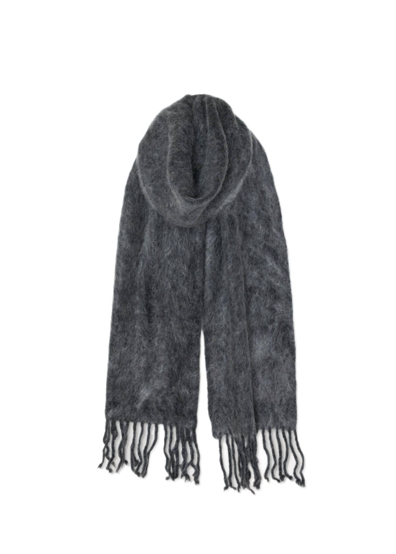 Both classic and versatile with the endless ways you can wear it. Embrace elegance with the Women's Brushed Mohair Scarf by SAYAKA DAVIS, an exquisite accessory in a sophisticated charcoal hue. This scarf combines 32% Mohair, 32% RWS Certified Wool, 33% Recycled Nylon, and 3% Polyurethane for a soft and durable texture. Ingeniously knit with a low gauge and one-by-one rib structure, it maintains its shape beautifully and offers an airy, voluminous feel that's perfect for any occasion. Designed with thoughtful craftsmanship, it's a luxurious addition to elevate your style profile.