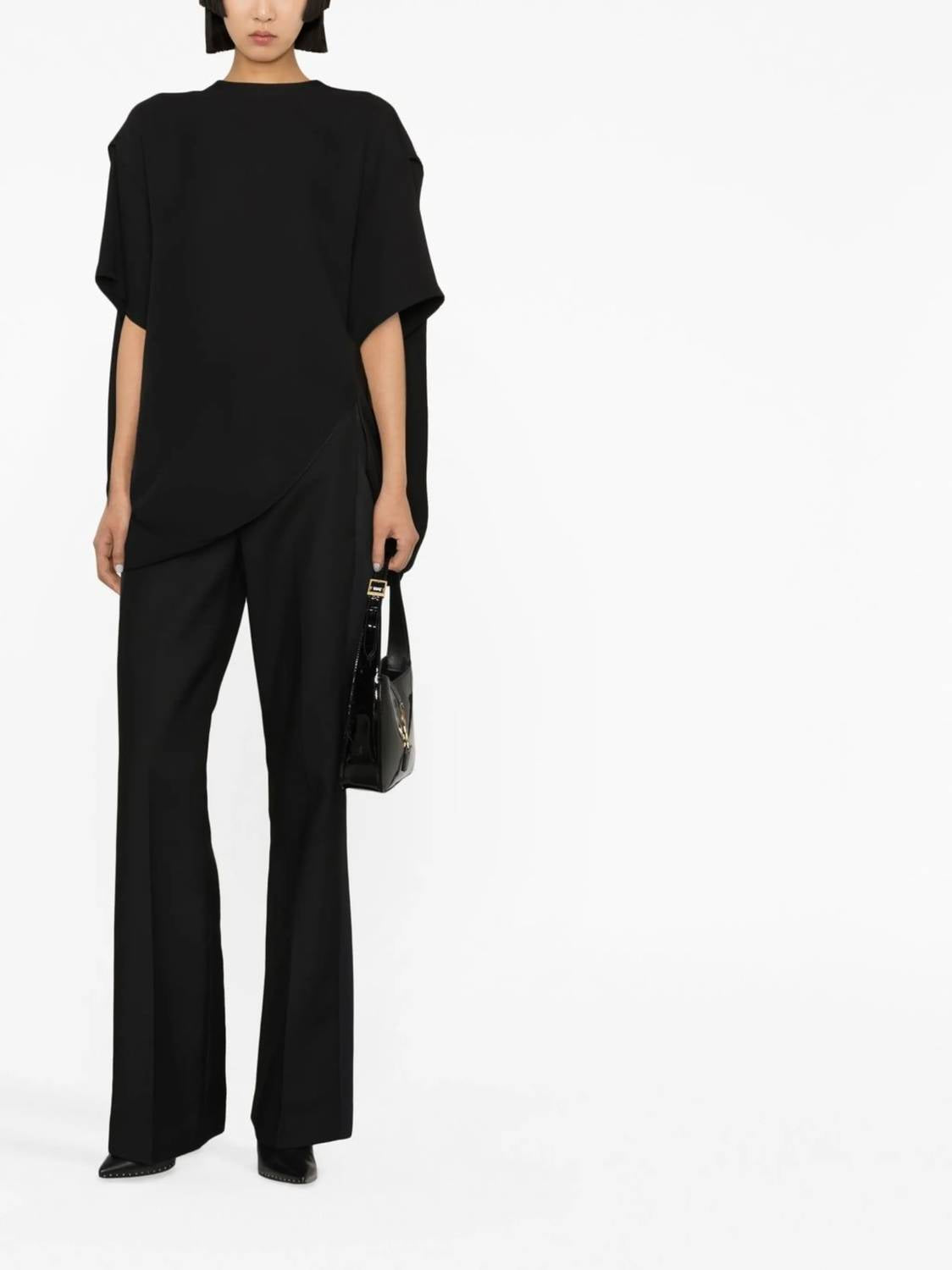 The short sleeve tee you'll want in every color. Introducing the Asymmetric T-shirt by Valentino, a sophisticated staple in solid black. This piece features short sleeves and a draped crewneck design, exuding timeless elegance. Crafted from 100% silk and expertly made in Italy, it offers a luxurious feel. Designed with a zip closure, this T-shirt requires dry cleaning for optimal care.