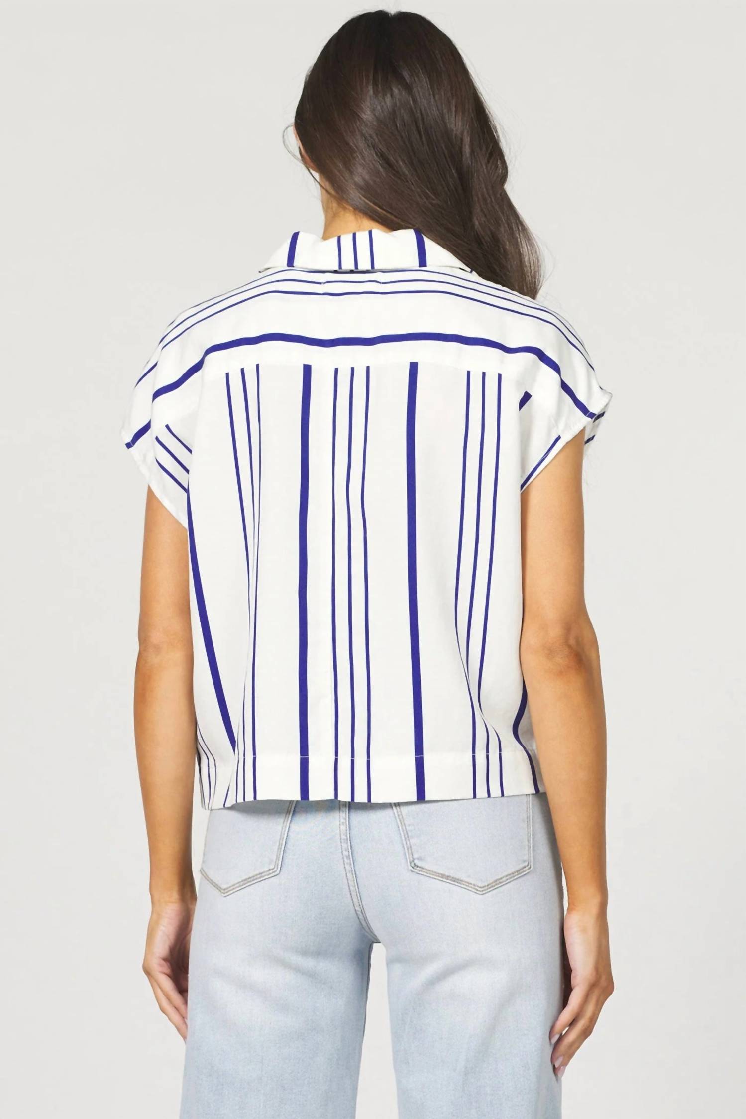 Look no further, you just found your perfect tee! Elevate your wardrobe with the Cruz Novelty Boxy Shirt by DEAR JOHN DENIM, designed for modern women with a taste for refined style. This short-sleeve piece is crafted from a breathable blend of 80% lyocell and 20% linen, featuring sophisticated Monaco stripes. Closure: Button closure with a classic collar neckline. Care: Hand wash and lay flat to dry. Ideal for a dinner party or workwear trend, this lightweight shirt ensures both comfort and elegance.
