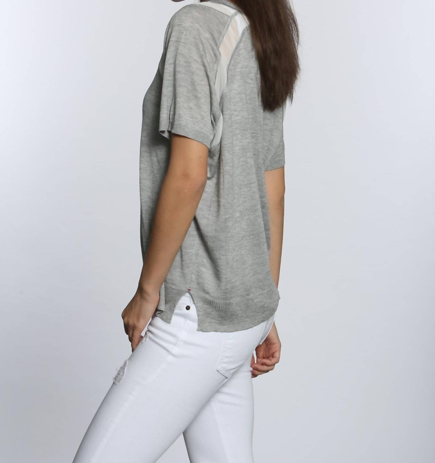The short sleeve tee you'll want in every color. The Women's Sheer Trim Scoop Top by LABEL+thread blends sportswear with elegance in a chic grey hue. Featuring short sleeves and chiffon inserts, this top is crafted from 85% silk and 15% cotton for a luxurious feel. Its boatneck and hip-hitting length create a modern silhouette, perfect for versatile occasions. Care: Hand wash or dry clean, lay flat to dry. Closure: Pull-on style.
