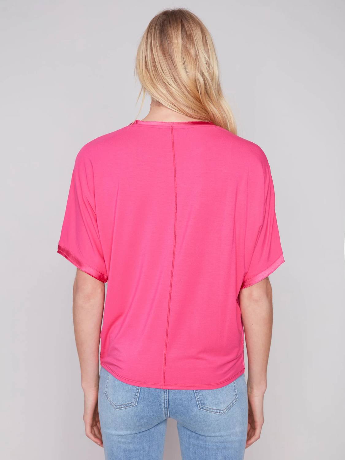 Charlie B - Short Sleeves Crew Neck Satin Jersey Dolman Top