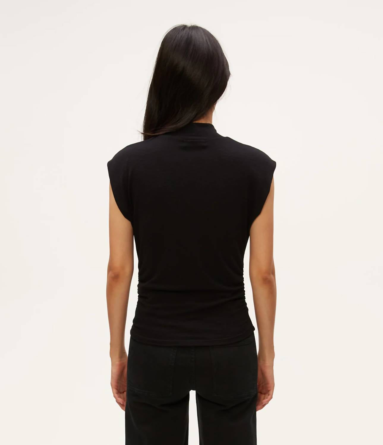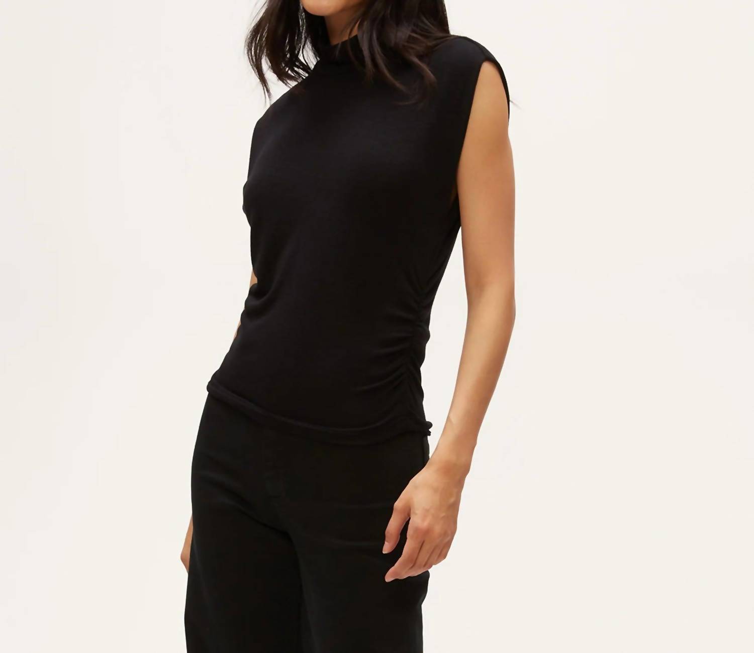 This classic, short sleeve tee will be your go-to staple this season and beyond. Unveiling the Tina Mock Neck Top by Michael Stars, a perfect blend of day-to-night elegance and contemporary style. Featuring a sleeveless design with a chic mock neck, this top is expertly crafted in the USA from Tahoe Jersey - a luxurious blend of 63% Polyester, 33% Rayon, and 4% Spandex that ensures a body-skimming fit. With side ruching for adjustable wear, it’s designed to be pulled on effortlessly. For care, simply hand wash and line dry to maintain its sleek finish.