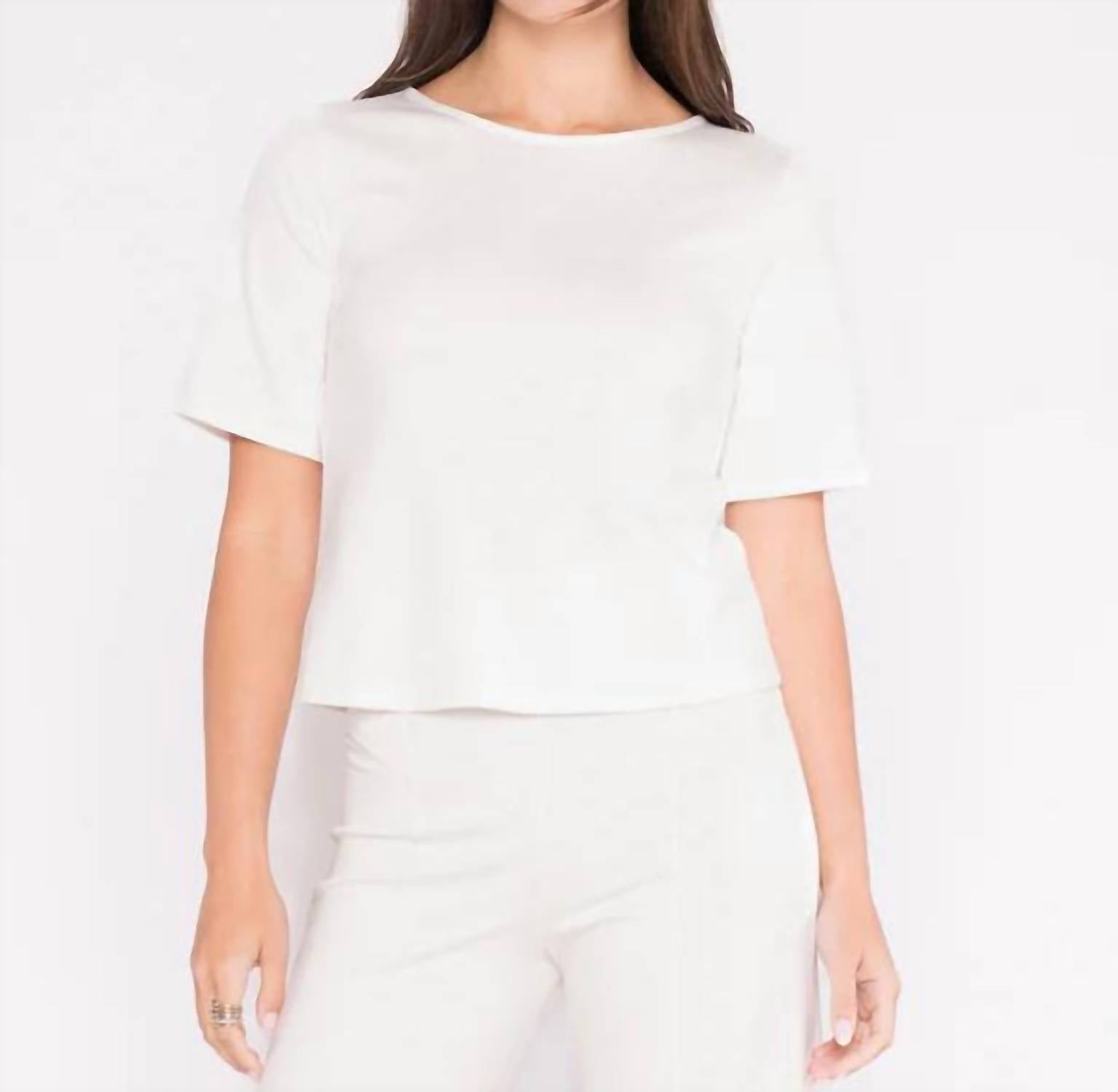The short sleeve tee you'll want in every color. Introducing the Ripley Rader Ponte Knit Short Sleeve Top Extended in Off-White, a timeless essential for those who appreciate refined style. The short sleeves and extended body length provide more coverage, while the modern square silhouette adds a polished touch. Crafted from a luxurious viscose blend knit, this piece combines the structure of tailoring with the comfort of a soft knit. Closure: Pull on. Care: Dry clean only.