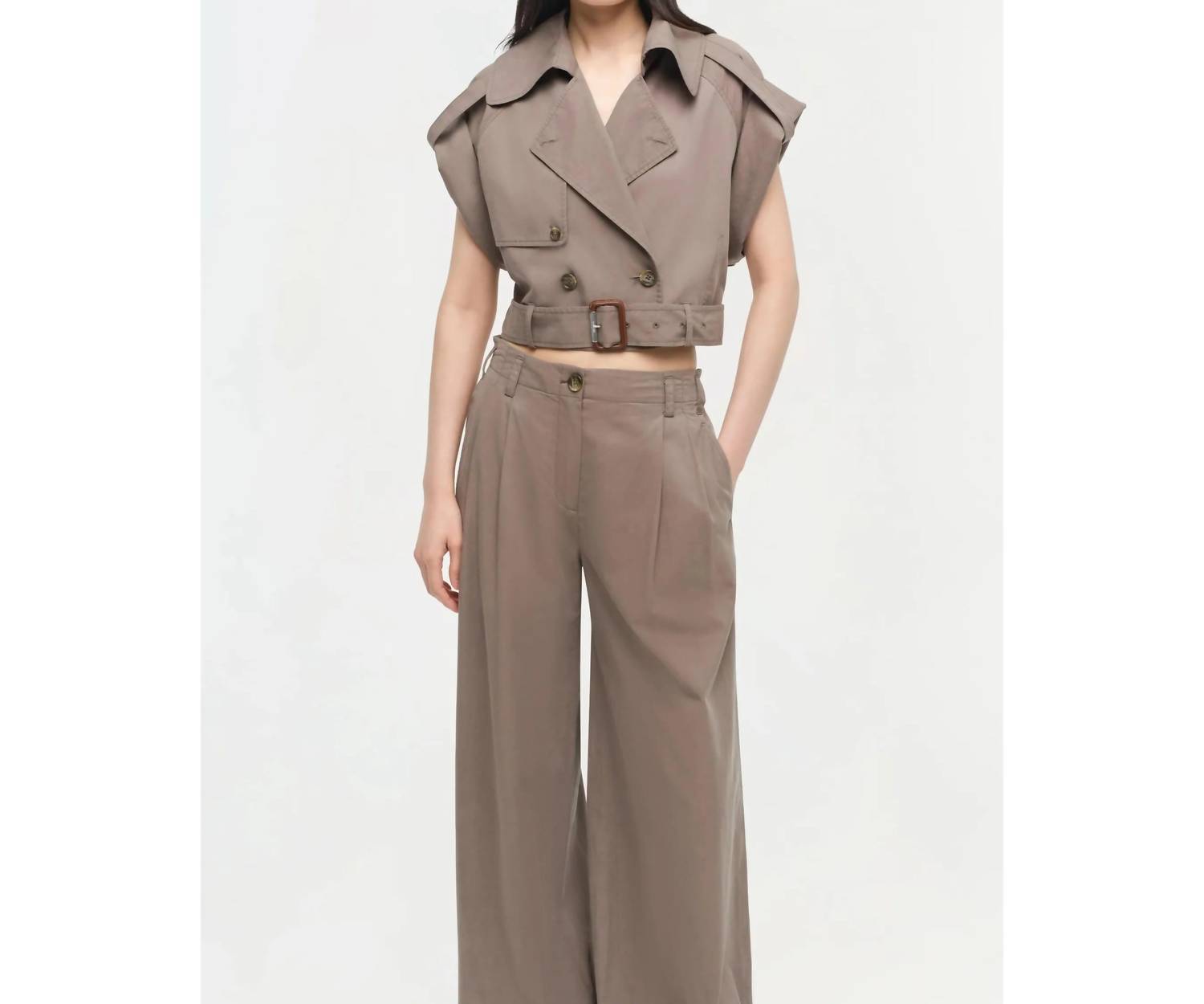 This classic, short sleeve tee will be your go-to staple this season and beyond. Offers a chic utilitarian feel in a faded olive hue, featuring a notch collar and exaggerated armholes. Short sleeve top combines Tencel and cotton for breathable comfort and includes a double-breasted button closure. Crafted for travel-ready style. Boasts a belted hemline for added flair. Recommended to hand wash for optimal care. Model is 5'10" and wears a size small.