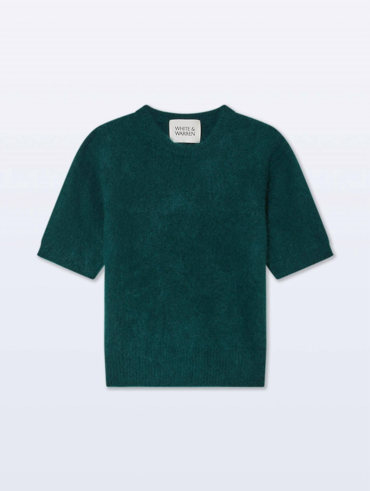 This classic, short sleeve tee will be your go-to staple this season and beyond. Introducing the Brushed Cashmere Tee by White + Warren, a timeless piece crafted from 100% brushed cashmere in a sophisticated Tealwood Green. This short sleeve tee features a crewneck design and a subtly shrunken silhouette with clean ribbed trims for a flattering fit. It's a pull-on style made for quiet luxury and perfect for a dinner party. Care: Dry clean only.