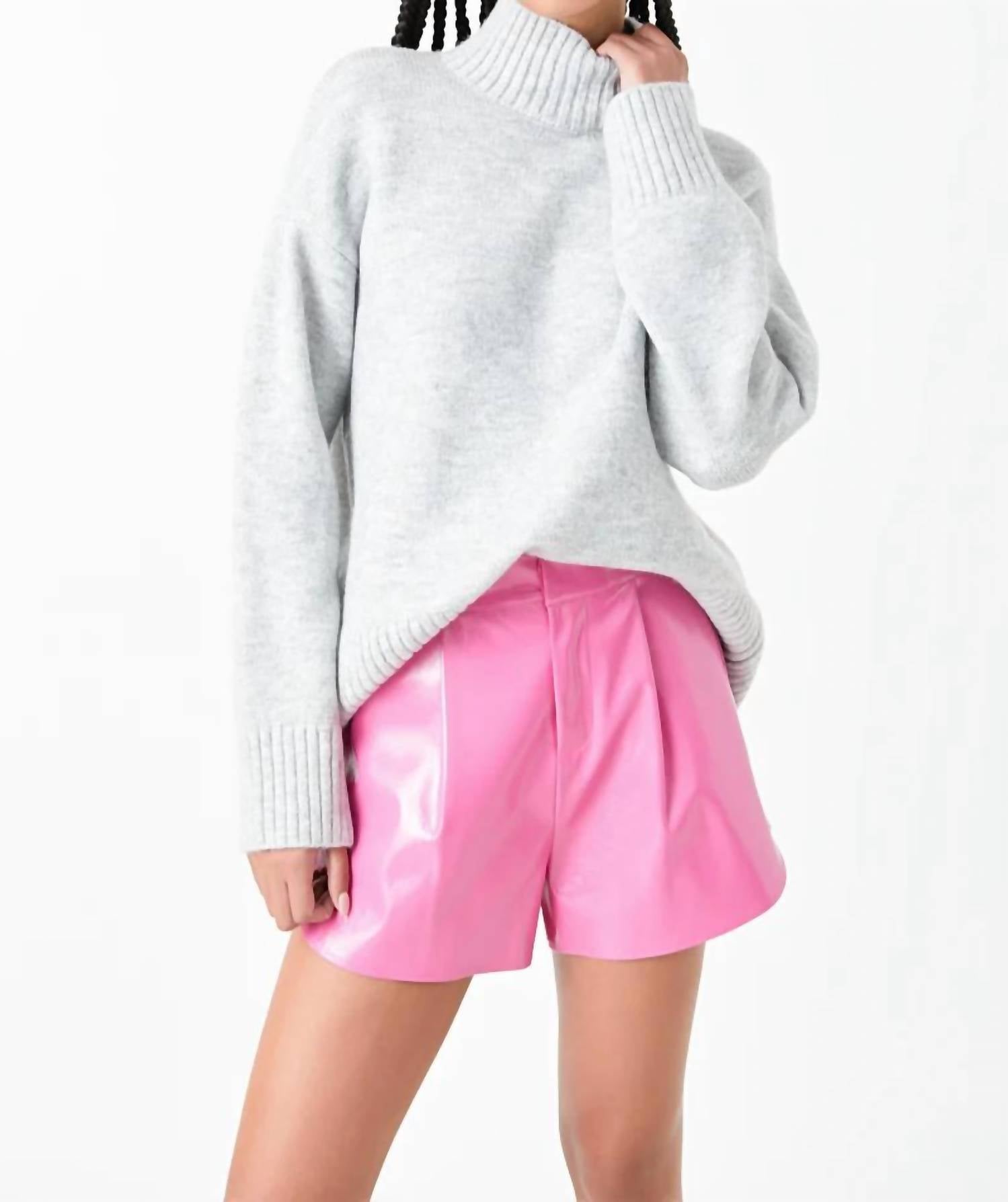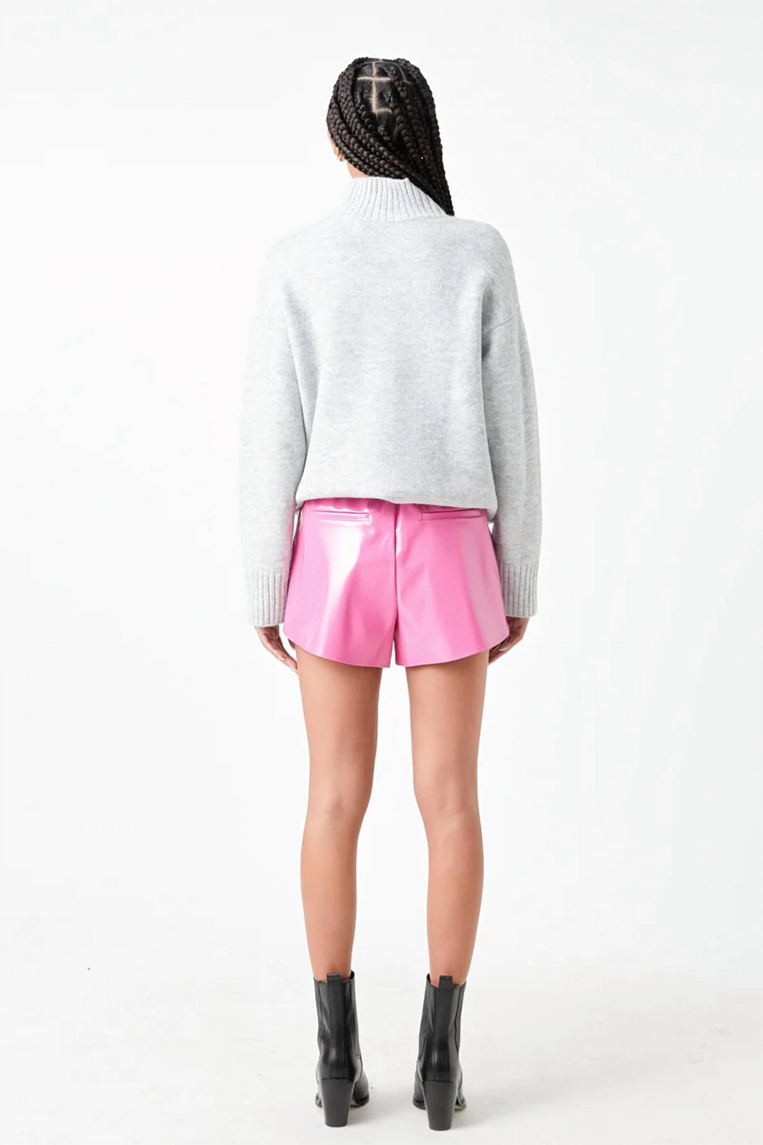 Fit to perfection, we love these high-waist shorts and you will too. Elevate your style with the High Waisted Faux Leather Shorts by Grey Lab, crafted in a striking pink hue. These women's shorts feature an elastic waistband at the back for comfort, and a shiny faux leather fabric with a luxurious lining for a polished look. Designed with practical side pockets and decorative back pockets, they also include a front zipper and metal hook closure. Composition: 100% Polyester shell with a Polyurethane coating, lined with 100% Polyester, and a contrast of 95% Polyester and 5% Spandex. Care: Hand wash cold, avoid bleach, do not tumble dry, iron, or dry clean.