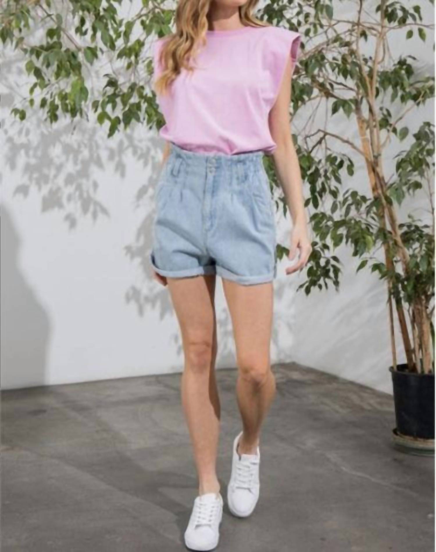 Live in Comfort this summer in these extra cute high waisted paperbag shorts! They are denim but super soft and comfy! Run true to size with a 4 inch inseam. No rips , so perfect for high and middle schoolers or mommies on the go!