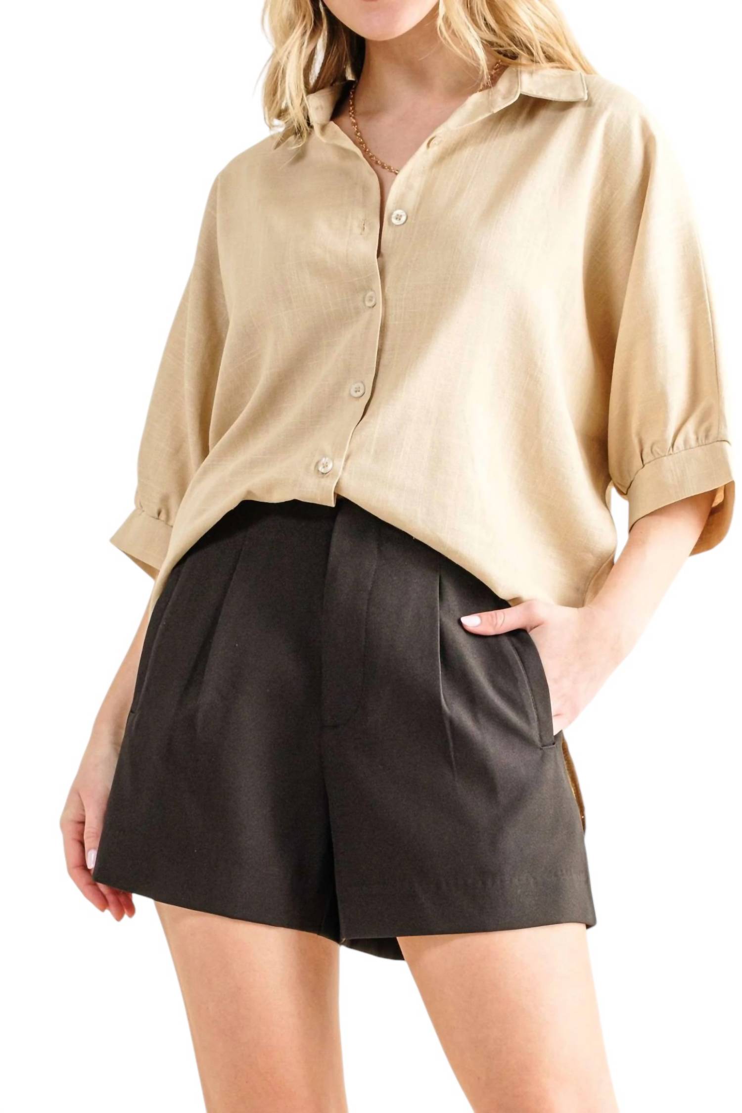 These lightweight shorts feature a pleated front, pockets, and a zip closure. Made of 96% polyester and 4% spandex, with a 100% polyester lining for added comfort.