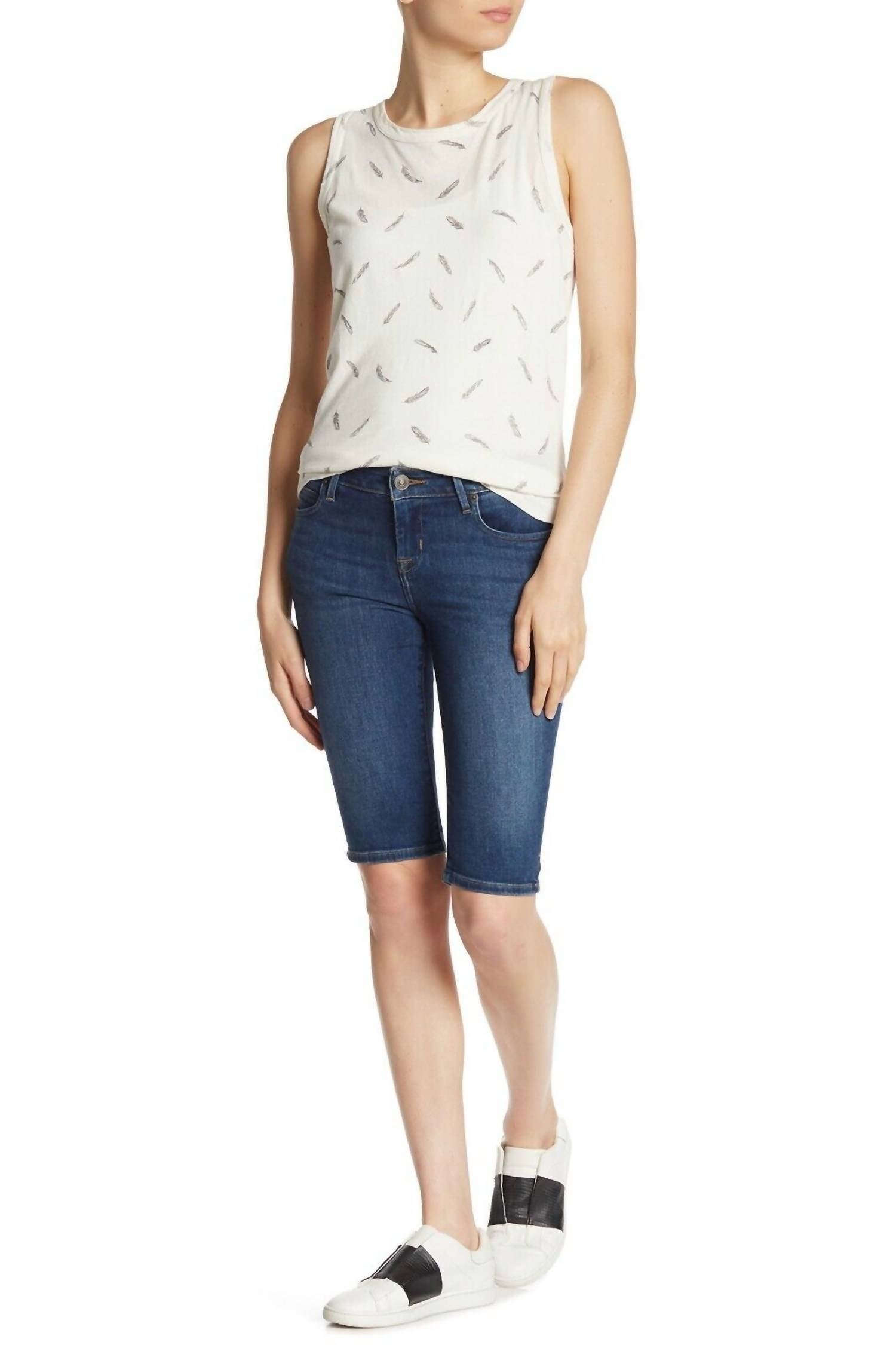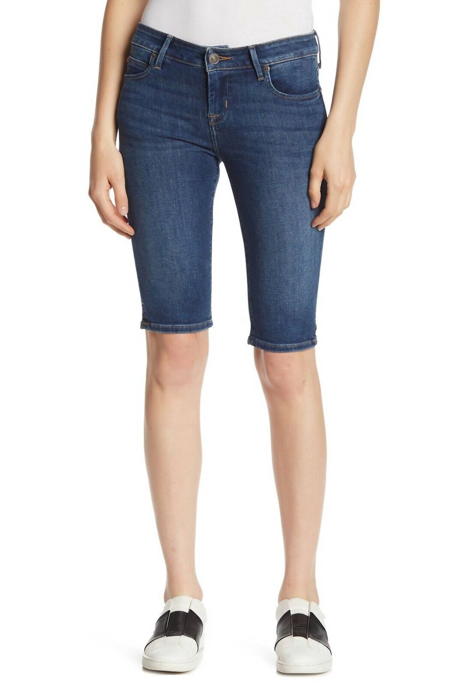 Discover the ultimate warm-weather essential with these stylish women's Bermuda shorts, skillfully crafted to provide a harmonious fusion of fashion and function. Elevate your summer wardrobe with the Women's Viceroy Bermuda Shorts by Hudson. These blue stretch denim bermuda shorts feature a zip fly with button closure, offering both style and comfort with a knee-length fit. Crafted from 79% cotton, 12% polyester, 7% lyocell, and 2% elastane, these shorts boast a textured pattern and practical design with front faux pockets and two back flap pockets. Care is a breeze with machine wash cold instructions, and the flattering fit is highlighted by a 12" inseam, 7.5" front rise, 12.5" back rise, and 8.5" leg opening at the hip, with a waist measurement of 13.5".