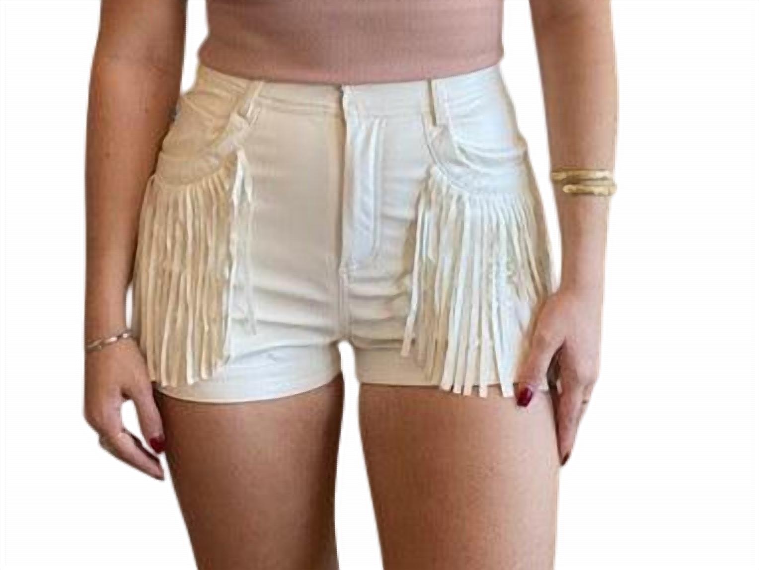 The cutest skort that combines style and functionality. Elevate your wardrobe with the Faux Leather Short by Line and Dot, a chic addition in a bone hue featuring eye-catching fringe detail. Made from high-quality faux leather, this piece is designed specifically for women. It includes functional pockets and a convenient zip closure. Perfect for countless occasions, this short does not have a specified inseam or detailed wash instructions.