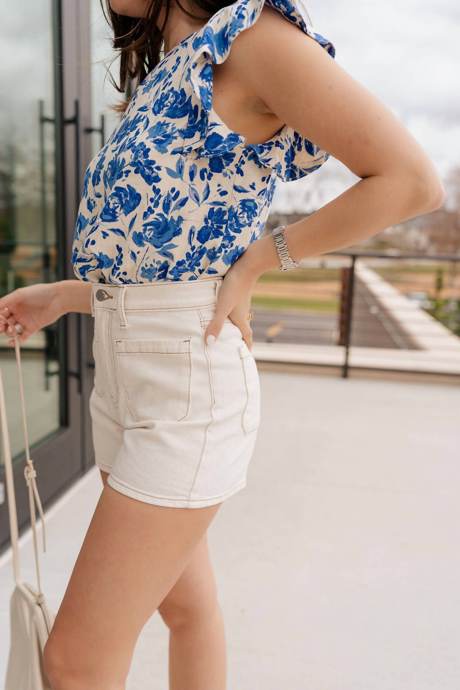 Enjoy a stylish and comfortable summer with these premium off-white jean shorts. Featuring a flattering high-rise waist, secure zip closure, and eye-catching contrasting stitching on the pockets, they offer a modern twist on a classic staple. Plus, they’re easy to care for—just machine wash!