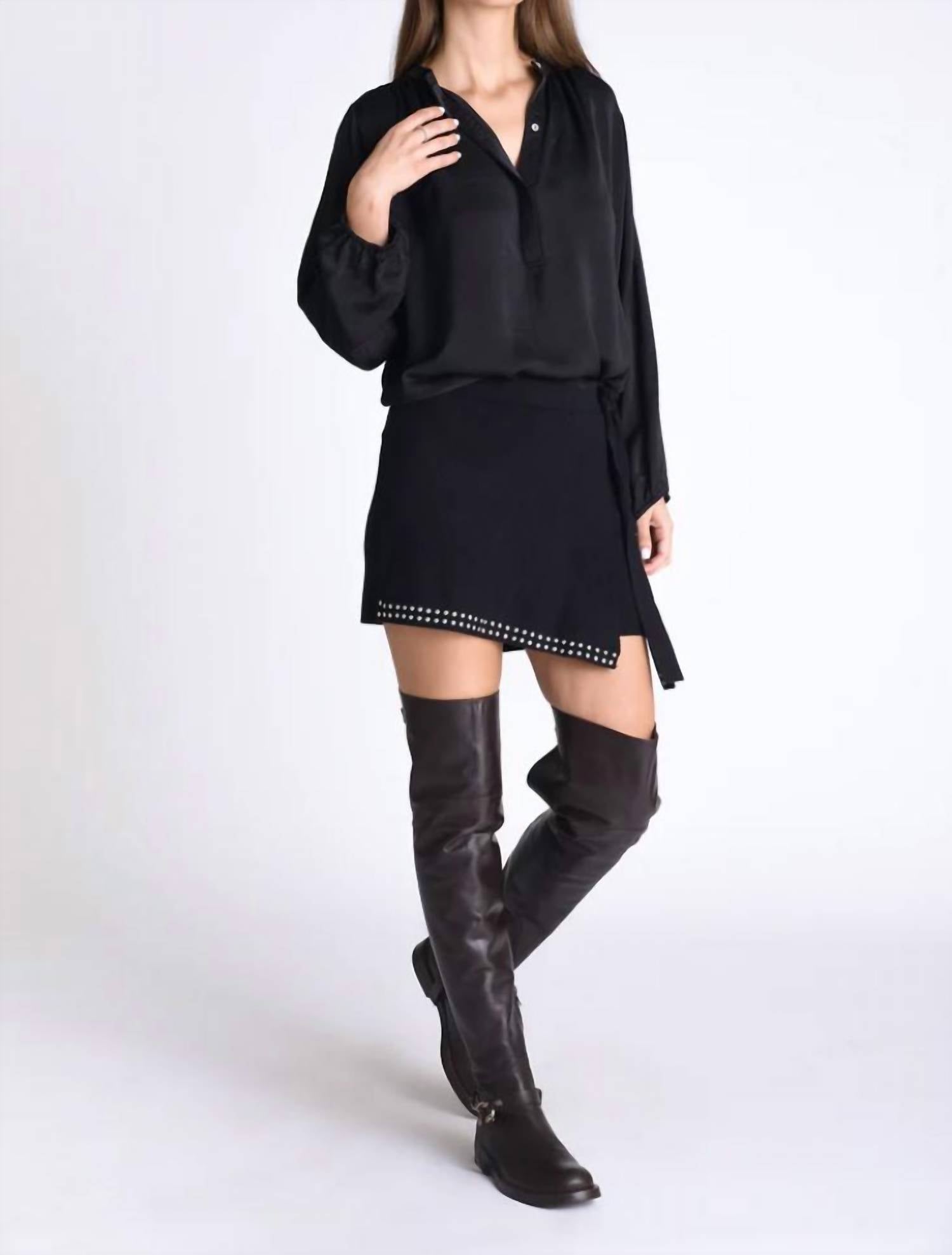 Tuck your favorite tee into these high-waist shorts for a more casual-cool feel. So sleek and effortlessly classy, these knit shorties are the perfect addition to any winter look. It features a side wrap with gorgeous stud details along the bottom edge in the softest, warmest knit material. One Size. 100% Knit Poly-Cotton Blend. Import.