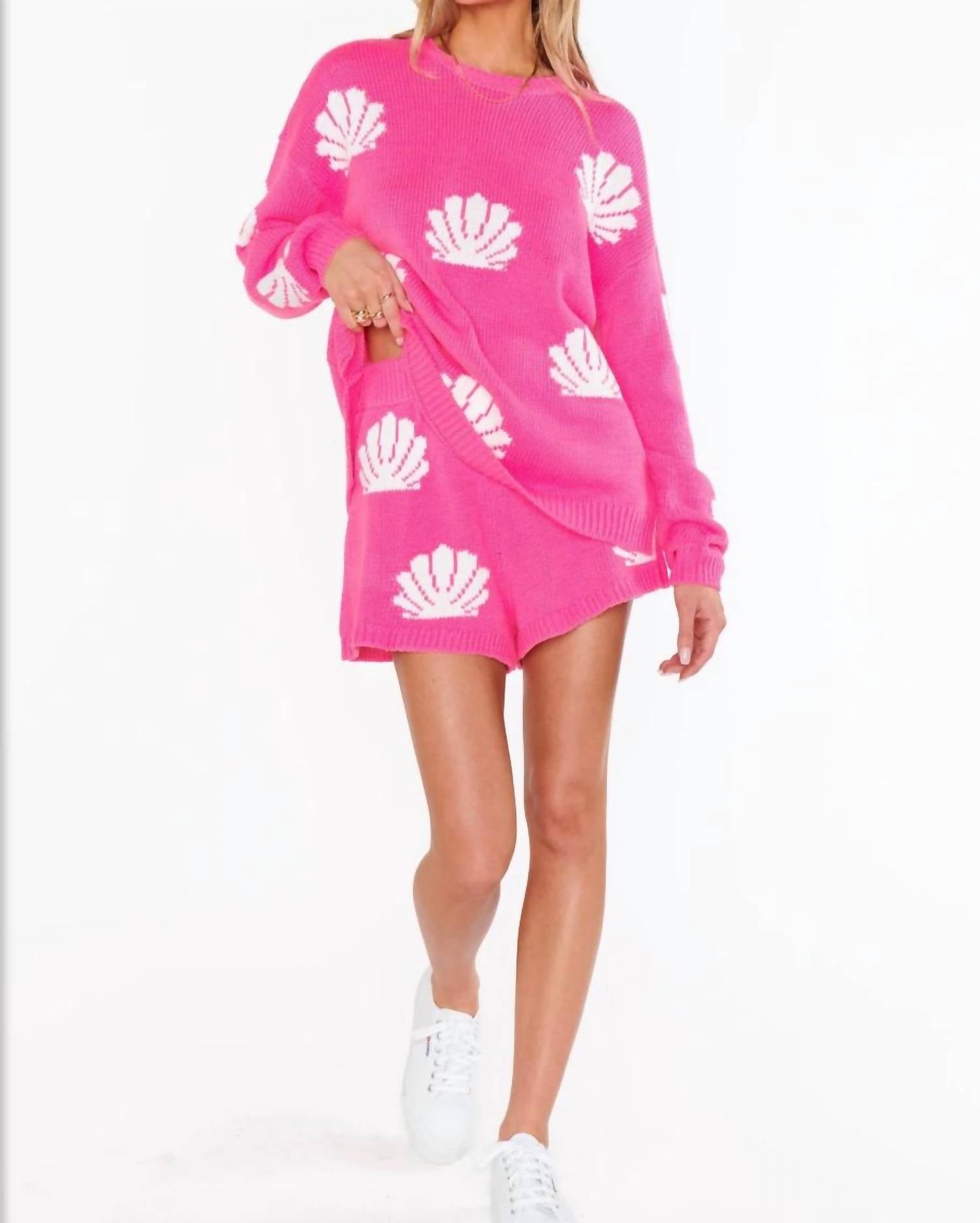 Fit to perfection, we love these high-waist shorts and you will too. Introducing the Boardwalk Short by Show Me Your Mumu, perfect for women seeking both comfort and style in a vibrant hot pink shell. Crafted from 100% acrylic, these graphic patterned shorts feature a high waist design with a convenient pull-on closure. Designed with a 2.5" inseam and practical side slits, they're perfect for warmer weather. Pair them with the Go To Sweater for an adorable matching set.