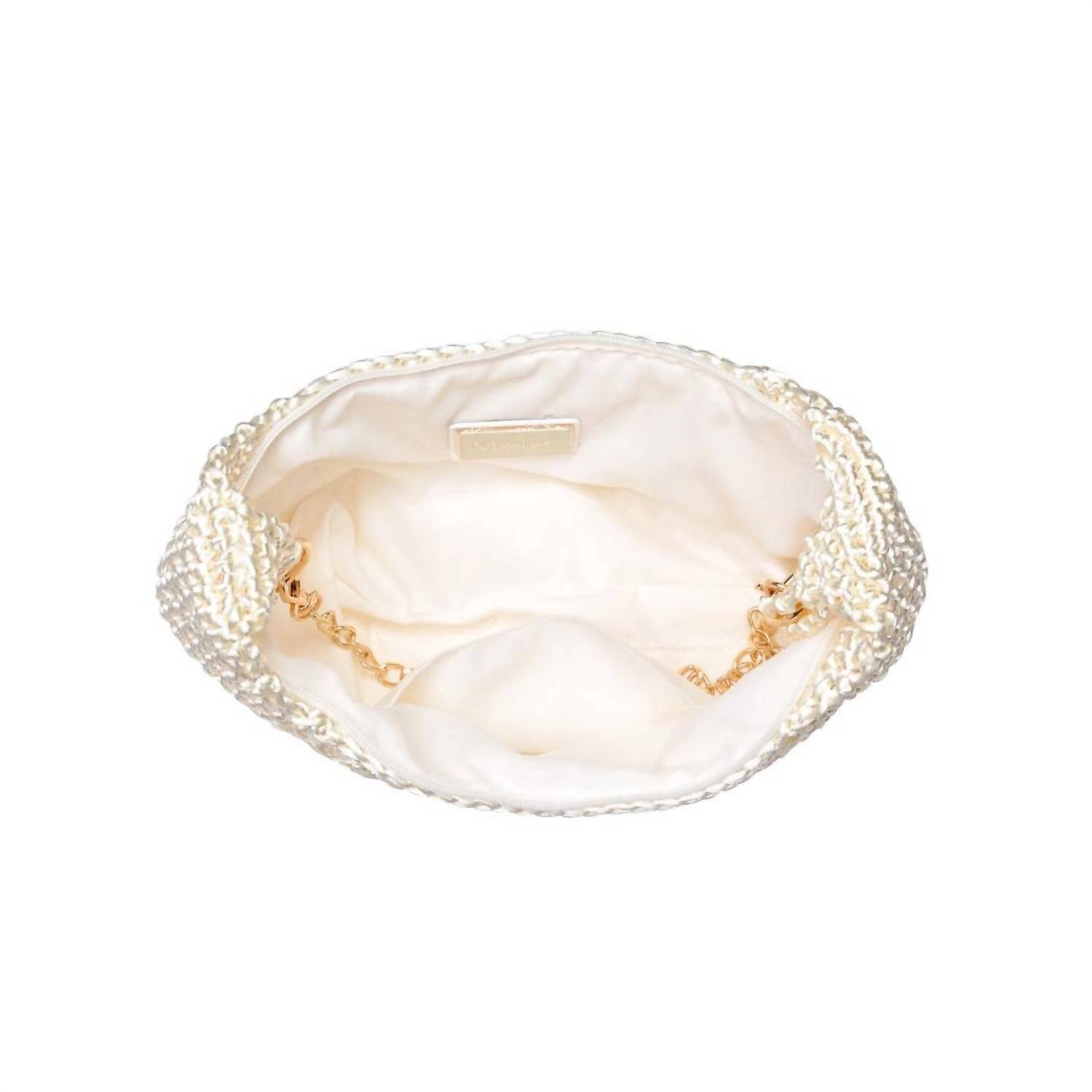 The Women's Soraya Shoulder Bag by Moda Luxe effortlessly blends style and sustainability with its ethical craftsmanship. Made from vegan leather in an elegant ivory hue, it's a versatile accessory for any outfit. The bag features a chic woven texture and includes a gold chain strap, offering both functionality and sophistication. Enjoy ample space for essentials in this stylish piece, making it your go-to for any occasion.