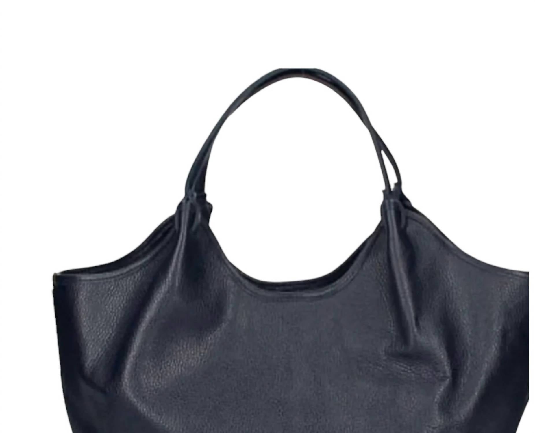 Introducing the Switch Leather Bag by Two Amicis, a statement piece in striking navy. Crafted from premium leather, this shoulder bag features gold accessories and a leather strap, adding a touch of sophistication. It includes a convenient zip closure, inside pocket, and a single compartment for optimal organization. Dimensions are 17.5 x 11 x 4.5 inches.