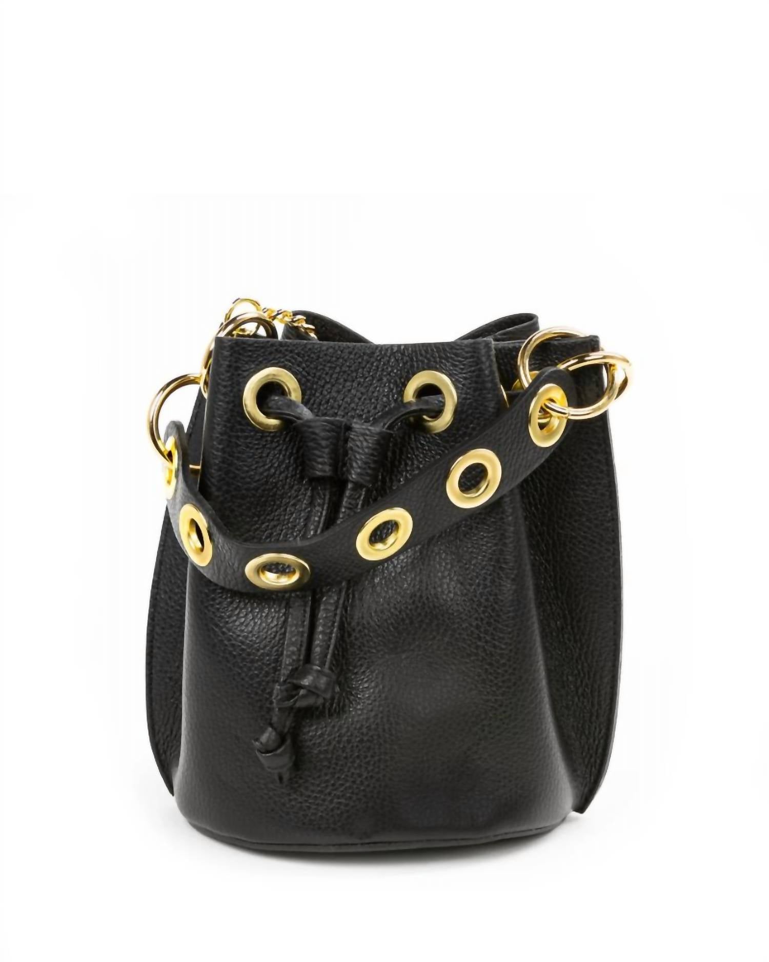 Crafted from premium Italian leather just outside of Venice, Italy, this medium small bucket bag combines functionality with flair. With dimensions of 8x7x6, it features a sliding closure, an easy-to-grab handle, and a 44" crossbody chain to match its hardware.