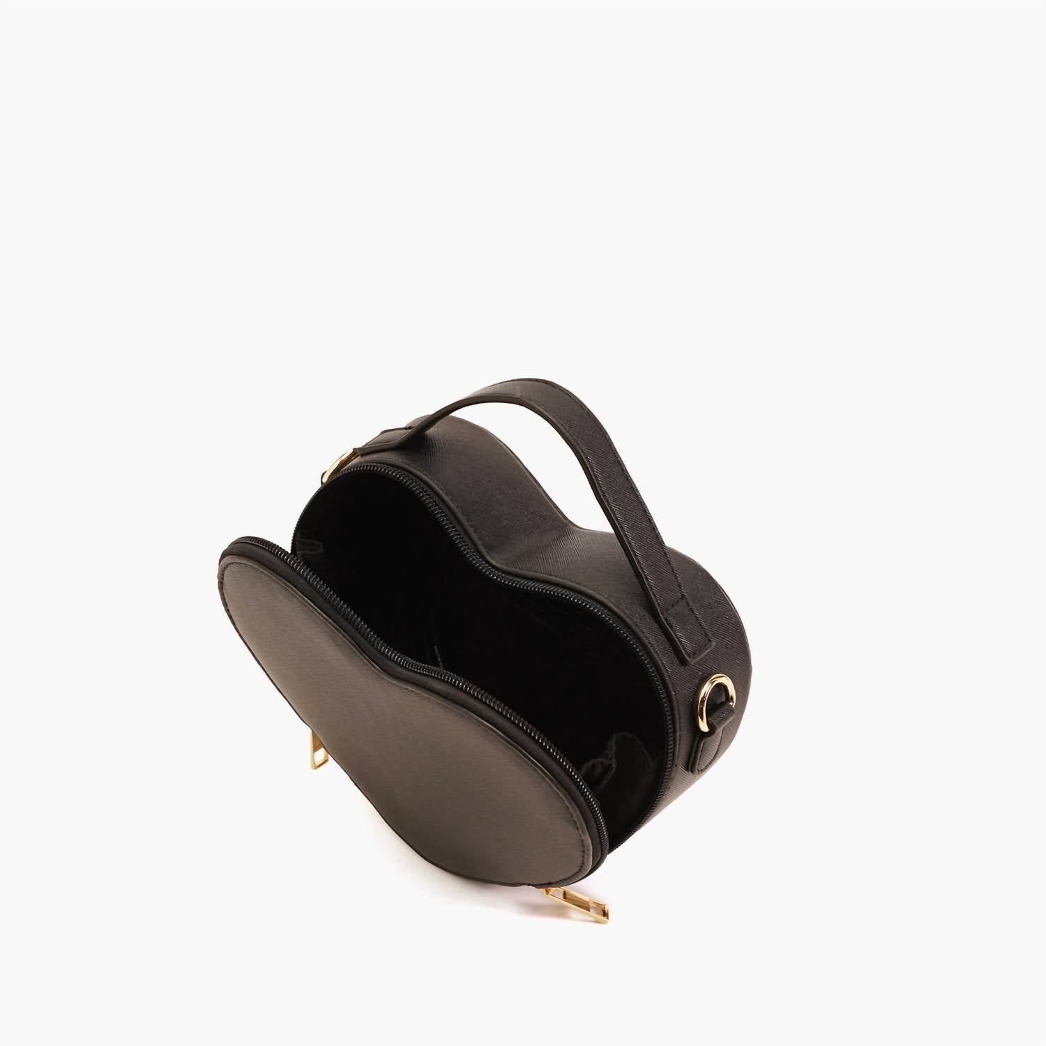Introducing the Little Heart Breaker Purse by Like Dreams, a charming shoulder bag designed in a romantic heart shape. This red bag is crafted from saffiano vegan leather and features gold hardware with a versatile two-way zipper closure. It's equipped with a top handle and an adjustable, detachable long strap, offering flexibility in wear. Spacious enough to fit a phone and small essentials, it measures 7.5" in width, 2.375" in depth, and 5.75" in height, making it the perfect accessory for carrying love.